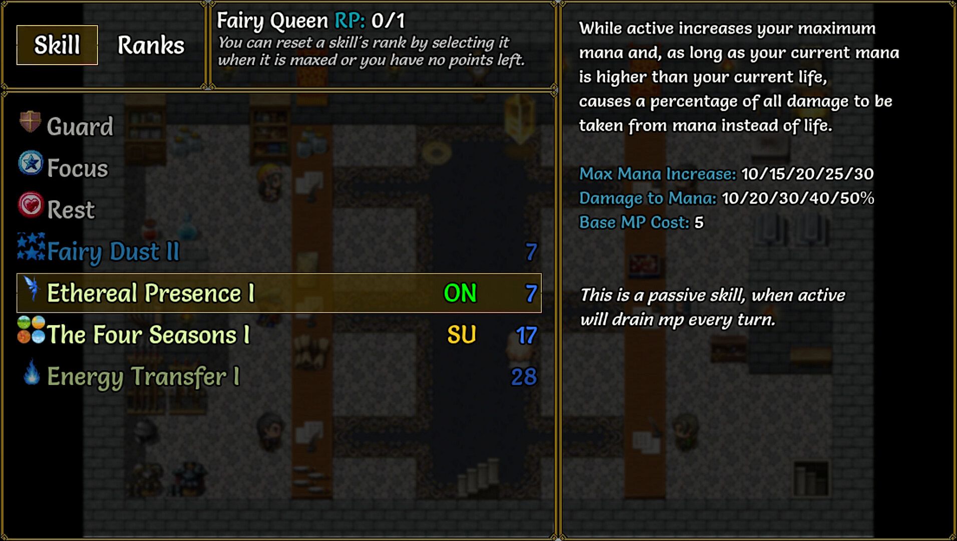 Ethereal Presence: Increases your maximum mana and takes damage on mana instead of life.