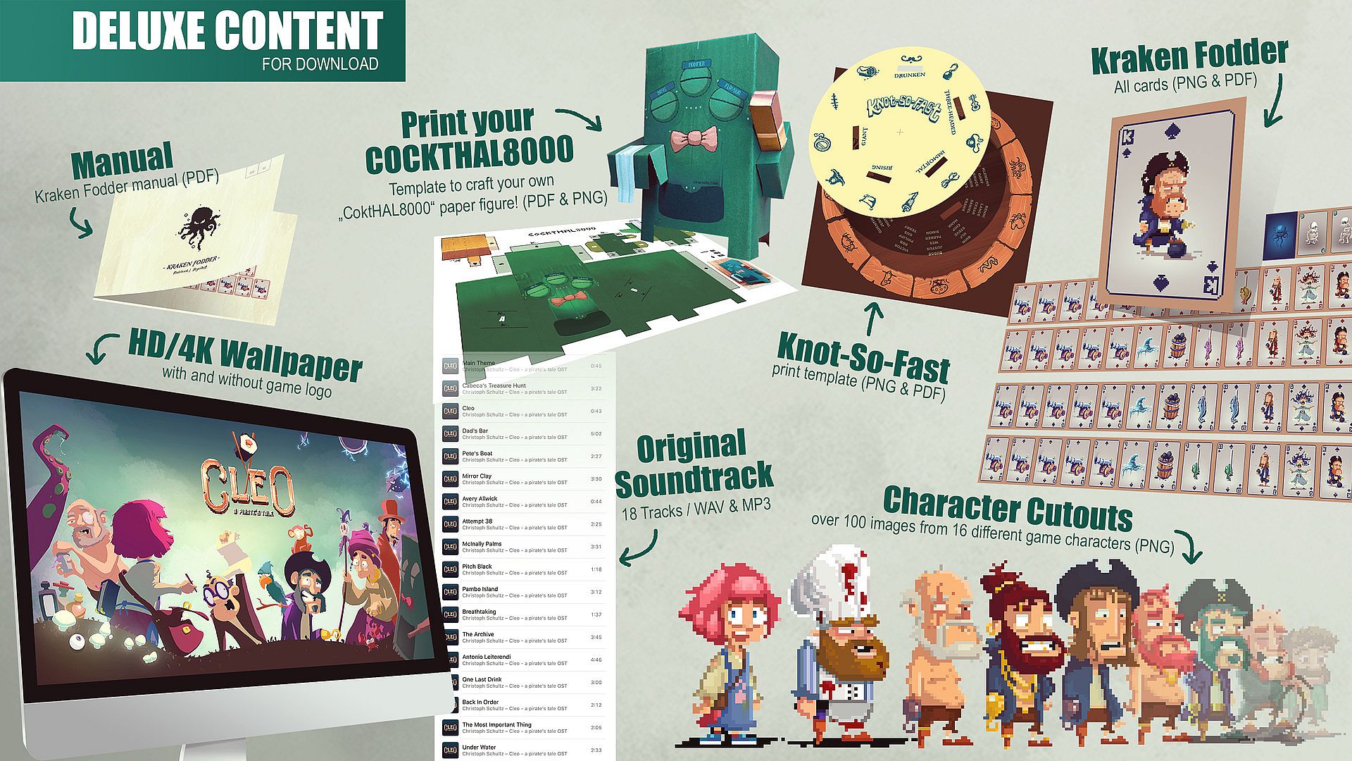 The "Deluxe Content" for the game "Cleo - a pirate's tale" contains: