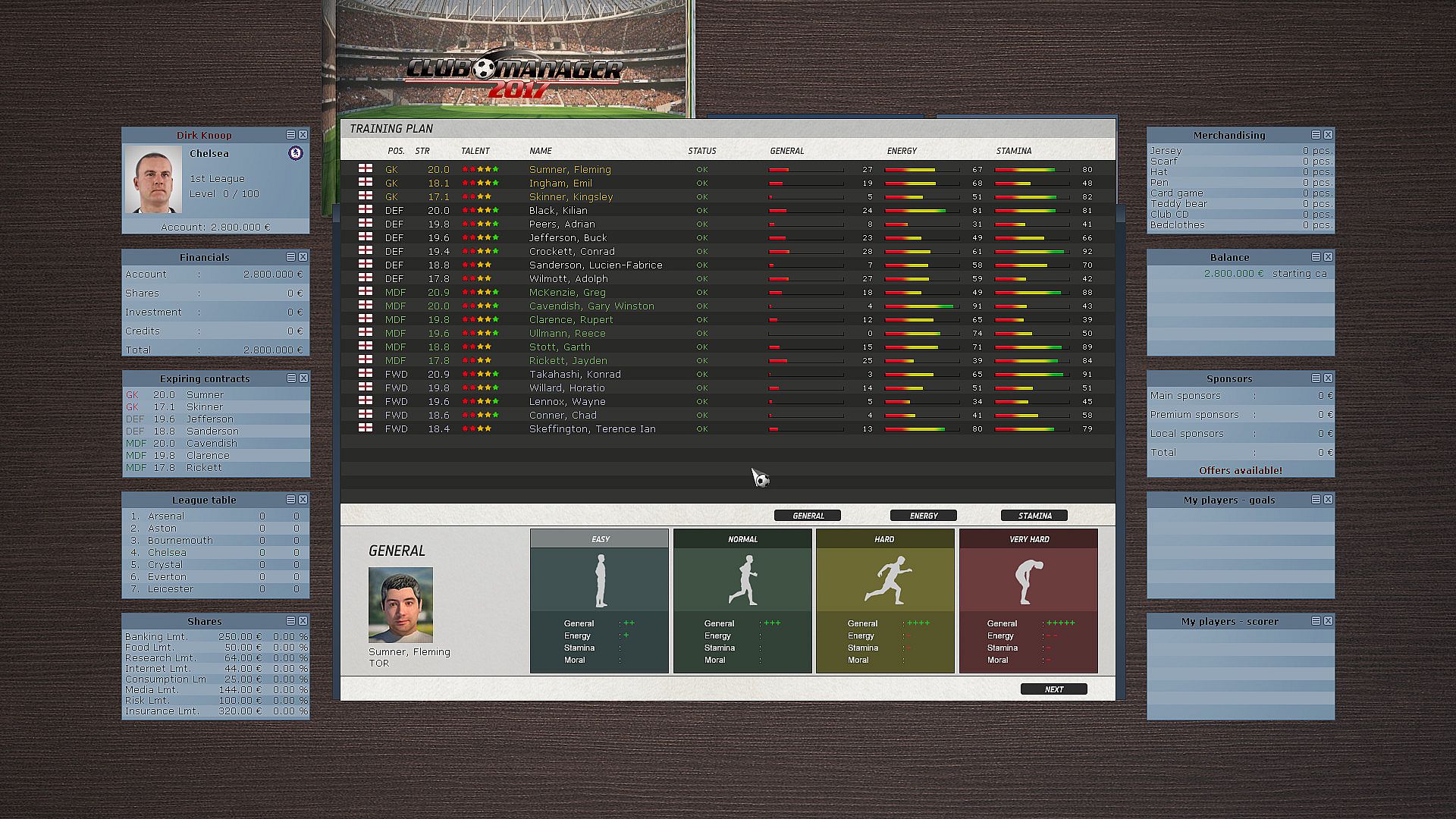 • Goals : As the manager, you will need to strive to meet the board's objectives for the season.