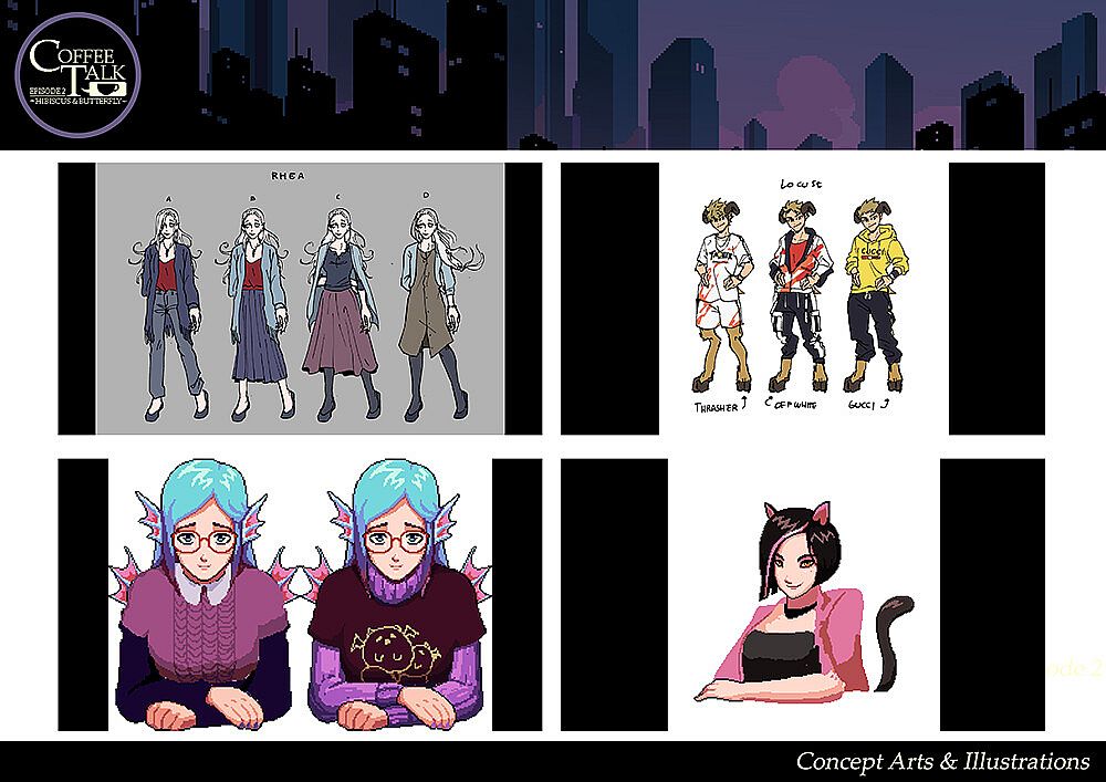 Concept art and original artwork from Coffee Talk Ep. 2: Hibiscus & Butterfly.DLC Content