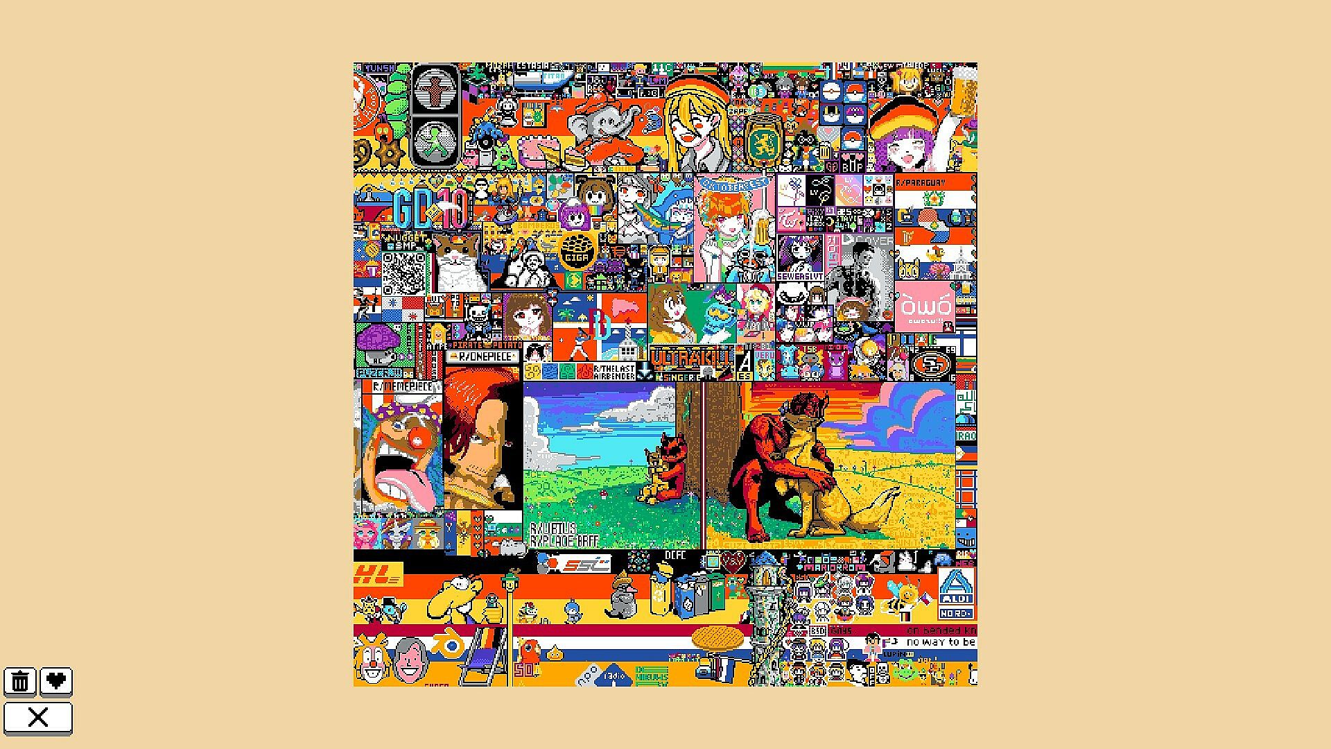 Celebrate the r/Place 2023 event with this free book for Coloring Pixels. It brings eight unique images inspired by Toastielabs logos placed on the community canvas. Fill in four 500x500 pixel sections from the final board alongside four snapshots of the logo in different spots over time. This casual indie pixel art collection offers a relaxed coloring experience on PC. Note the slightly mature content, including crude language, cursing, and Reddit community imagery. It suits fans of simple, community-driven pixel puzzles.