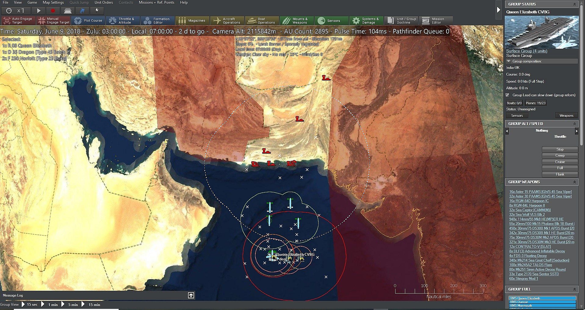 Last-minute peace negotiations fail, and on June 3, 2018, the subcontinent flares into war yet again. Most of the fighting is along a narrow, grinding front. The Commonwealth armies have adopted a broad front grinding approach, one designed to take advantage of India’s greater population and just as importantly, be less likely to lead to a spooked nuclear launch.