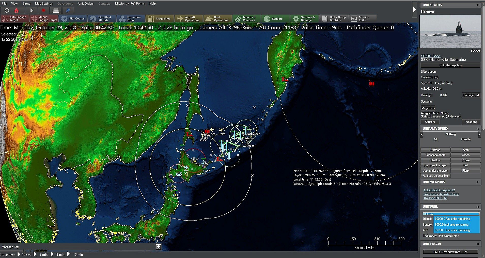 The Russians have been slipping troops in, but an improvised convoy has been readied at Petropavlovsk-Kamchatsky to carry much heavier forces to Kunashir and Iturup. Should it reach the islands safely, the Japanese goal of taking them without excessive casualties will be impossible. On the other hand, if it's sunk, the Kuriles are Japan's for the taking. The stakes are thus extremely high.