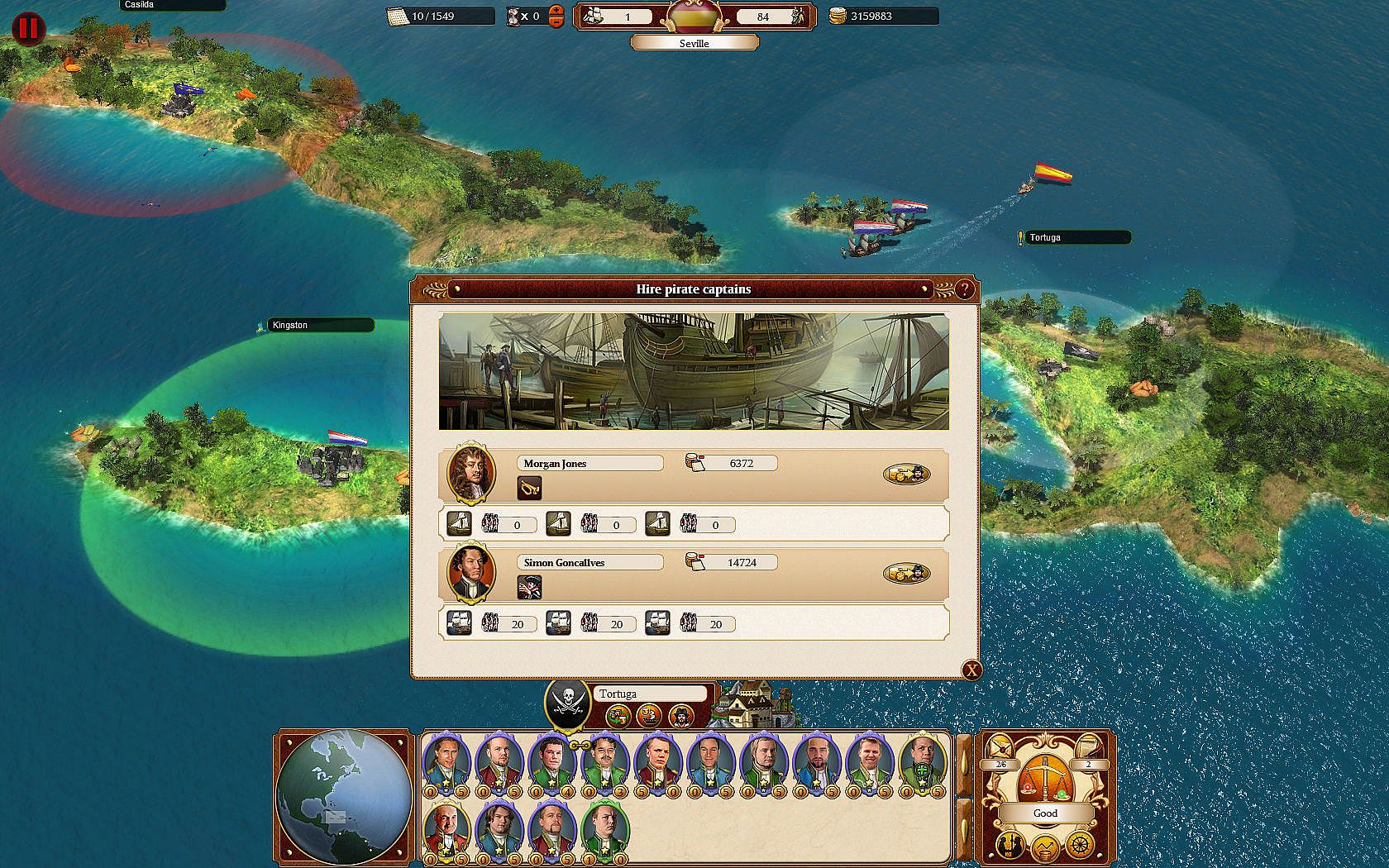 • Hire pirate captains and use their fleets against your enemies without taking the blame for their unprovoked attacks.