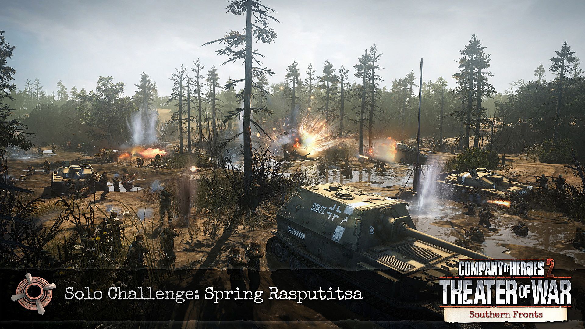 25 lutego 1943 roku, Wiosenne roztopy zaskoczyły niemiecką armię, która była kiepsko wyposażona na tę ewentualność i nie dawała sobie rady w głębokim błocie.\n\nPoprowadź atak na niemiecką dywizję pancerną, która utknęła w błocie. Zniszcz ją, zanim uwolni ją piechota i czołgi zdołają uciec.