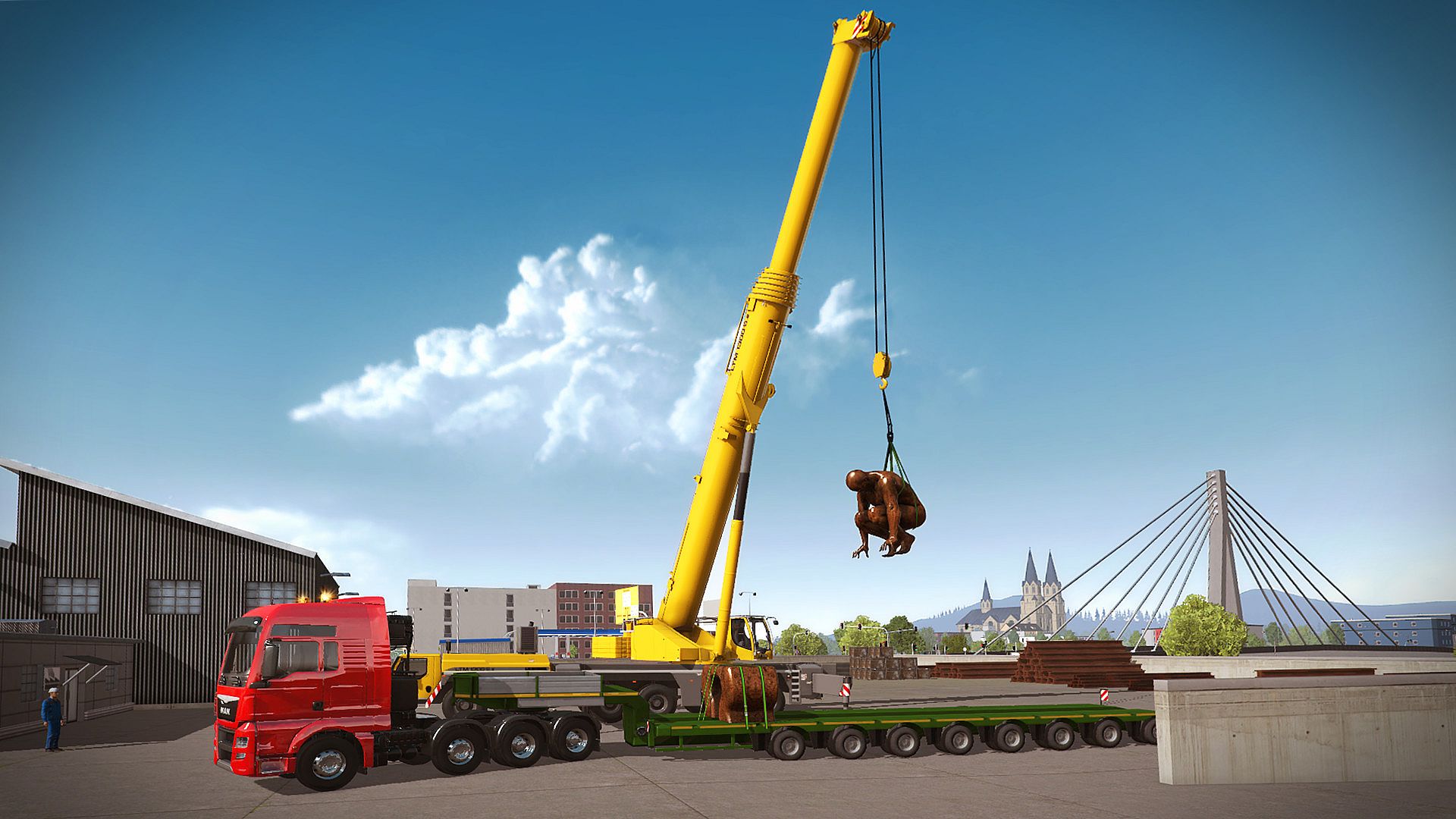 The sixth official expansion for Construction Simulator 2015 is all about the transportation of really heavy equipment. Silos, cell towers, a yacht, a large turbine and even an old steam engine all need to be delivered from various locations in the game world to their respective destinations. In line with this, the fleet is being expanded to include the LIEBHERR® LTM 1300-6.2 mobile crane with its 300 t. max. lifting capacity and the MAN® TGX D38 four-axle tractor.