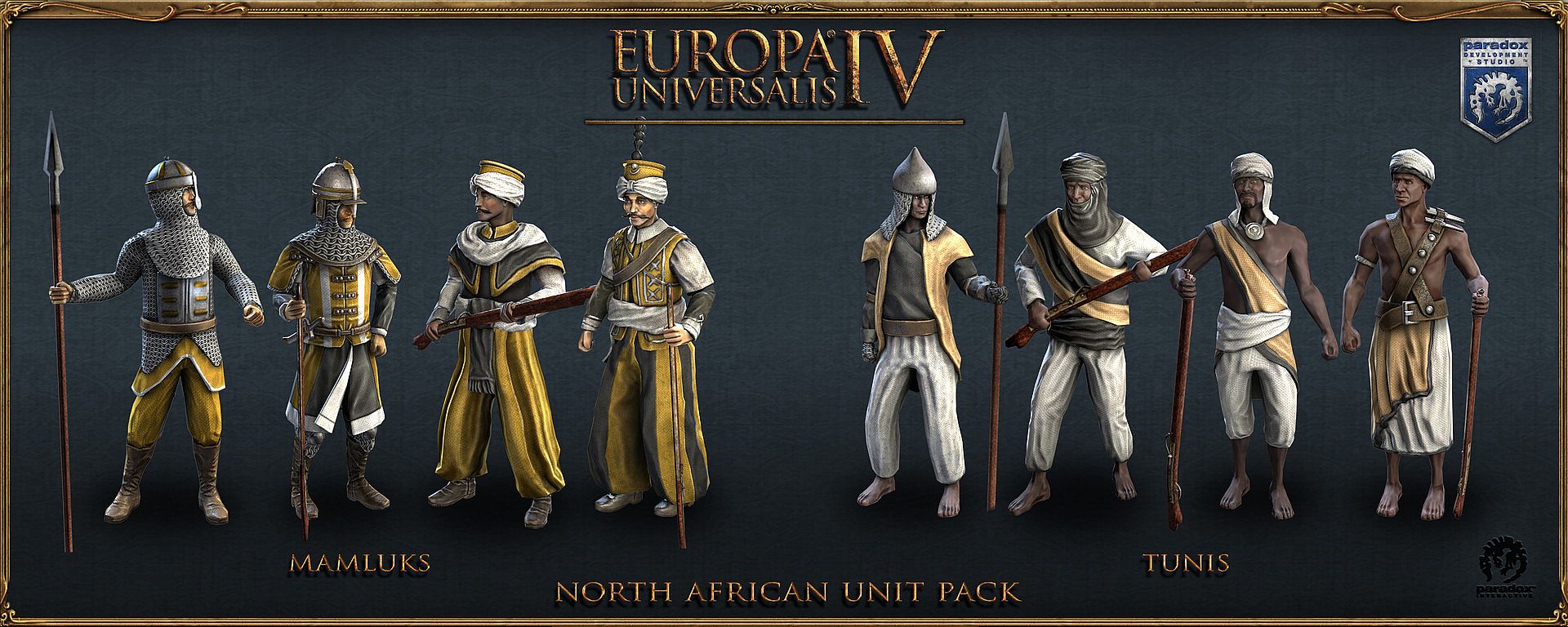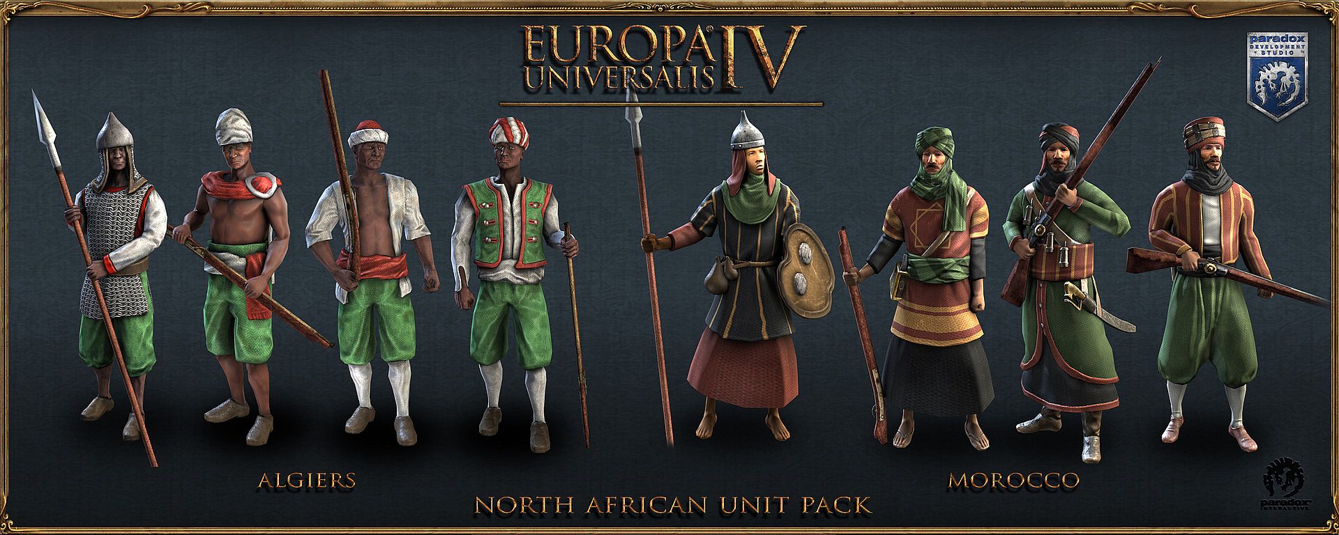 Enhance your Europa Universalis IV experience with new unit designs for armies of the Mediterranean and East Africa! After all, when the pageant of history unfolds on your computer screen, it’s important to be up to date with the latest fashions. Overrun your enemies while kitted out in the hottest new battle tunics!