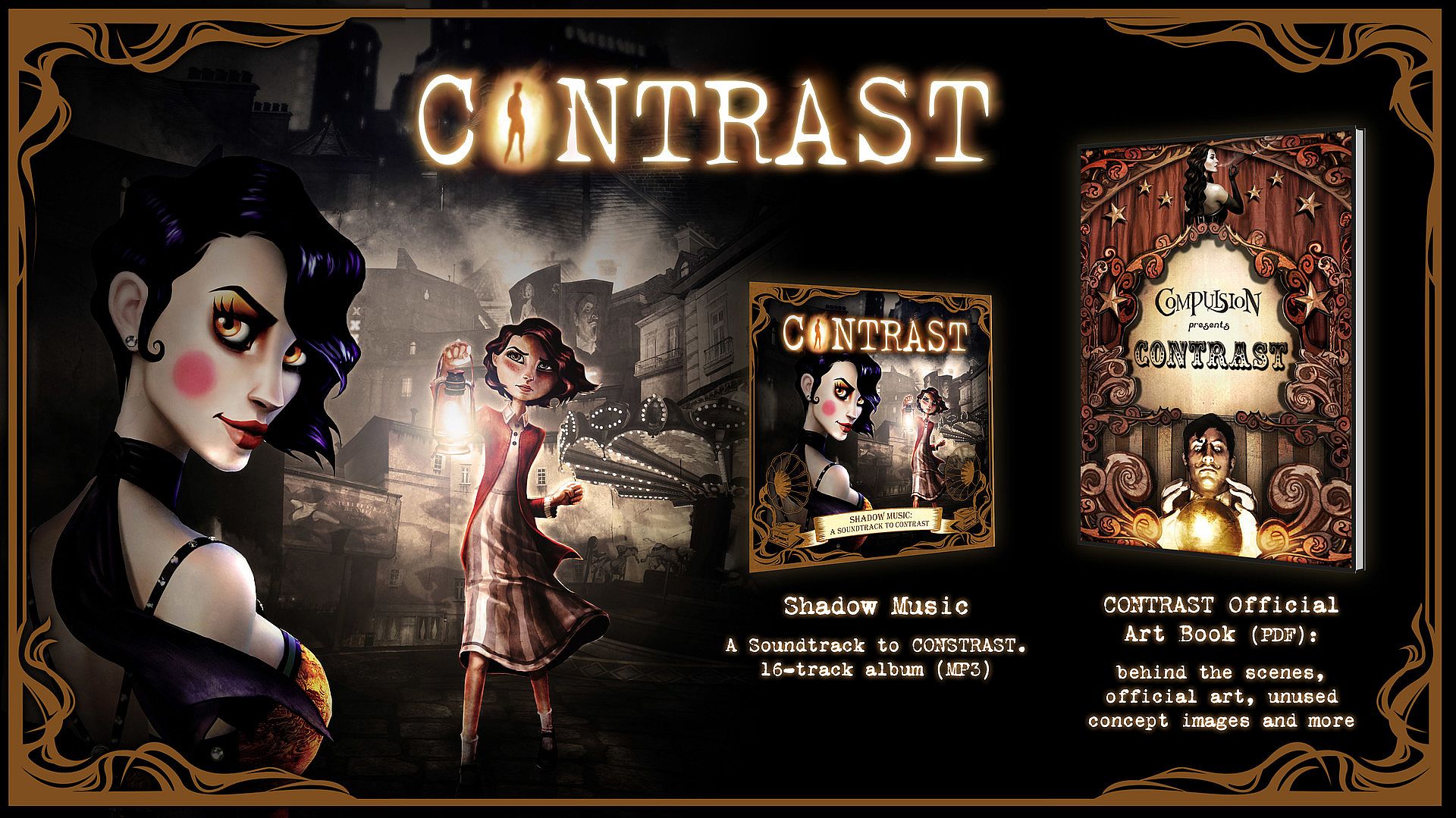 CONTRAST - Original Soundtrack + Art Book includes digital copies of Shadow Music – A Soundtrack to Contrast and the Official Art Book.