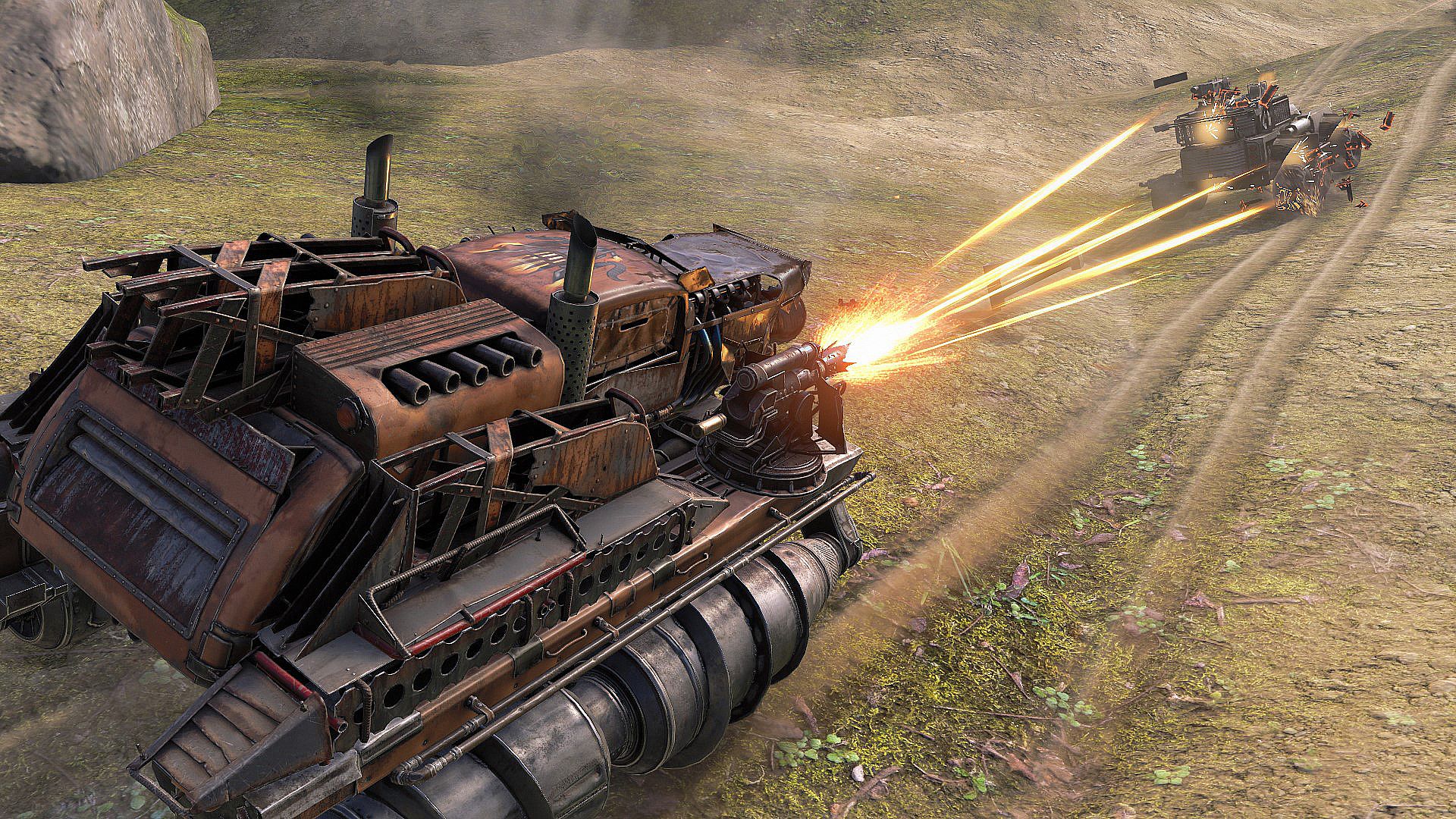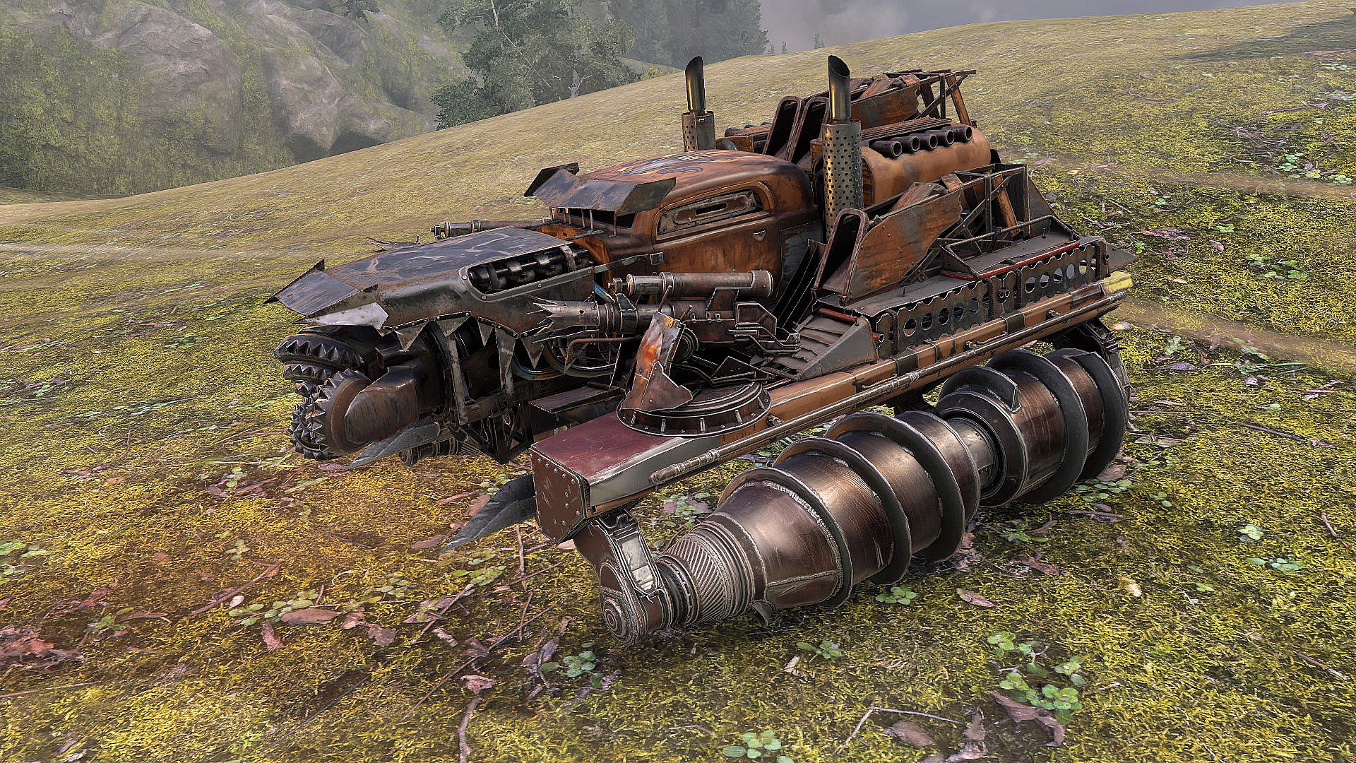 Ignite your massively multiplayer battles with the Wild Fire armored car on augers and dual Junkbow shotguns. The epic Cerberus cabin delivers melee power against enemies, while the Firestarters faction parts boost your builds right away. Assemble vehicles using up to 60 parts in this free-to-play action racer on PC, loading blueprints from the Packs tab to hit the garage fast. Red Hot's portrait and Fire Salamander paint set your ride apart, backed by 3800 coins for market buys and workshop rents. Players craft balanced cars excelling in weapons, armor, and speed for intense combat. This suits survivors who thrive on vehicular destruction and faction rivalries.