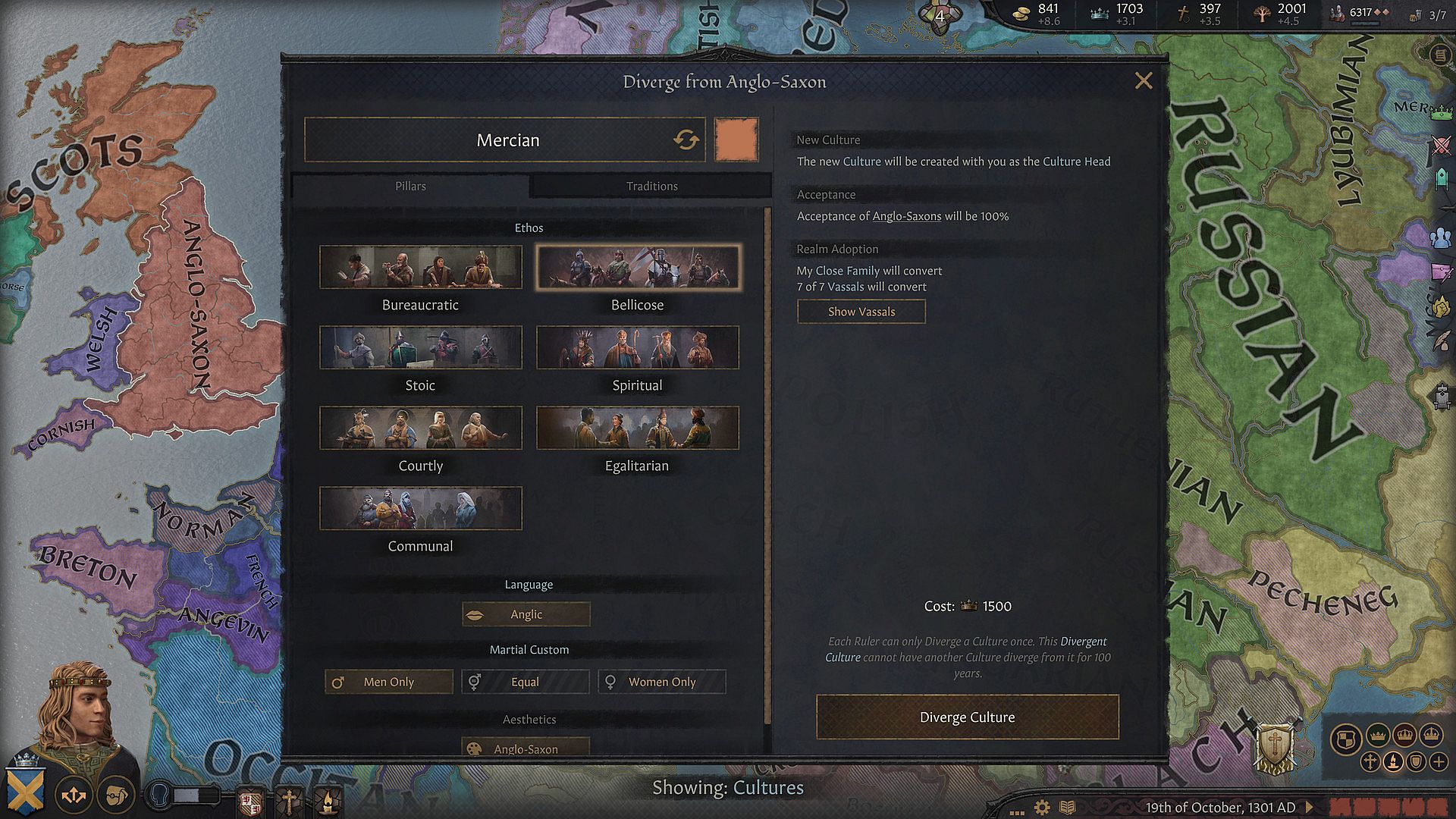 • A greatly overhauled Culture system lies ready at your fingertips. Major new Cultural Traditions allow you to significantly change the way you play, from choosing the right benefits due to your realm’s terrain to giving your military new bonuses. Determine your heritage through Cultural Pillars or have your subjects learn new languages.