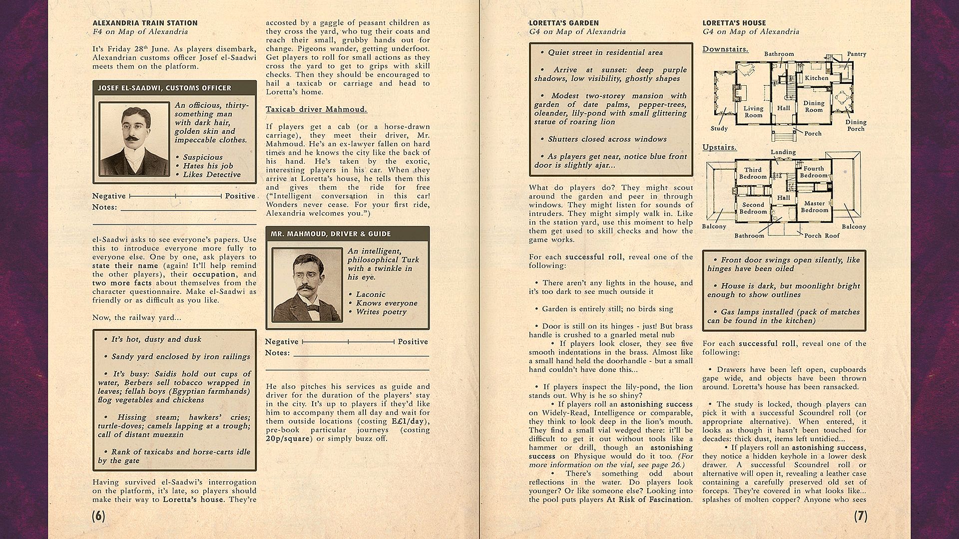 It takes place in 1920s Alexandria, in the world of the Secret Histories, where hidden gods watch over a Lovecraftian world of apocalypse and yearning. It's been designed to offer an accessible experience to people who've hesitated to played TRPGs before, but to offer plenty of meat to tabletop aficionados too.
