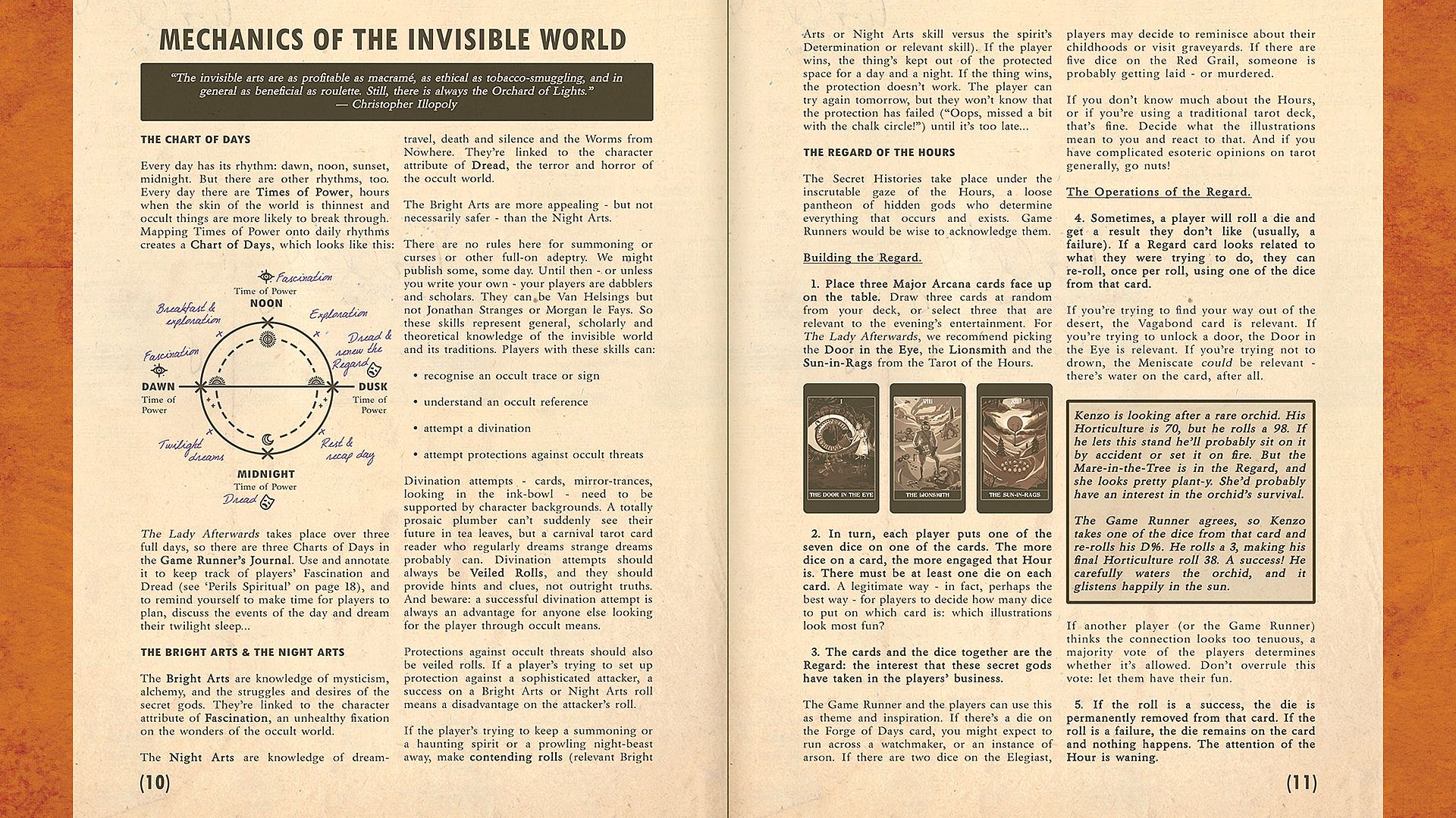 The Secret Histories Rulebook, a 30-page guide to Cultist's tabletop rules and mechanics