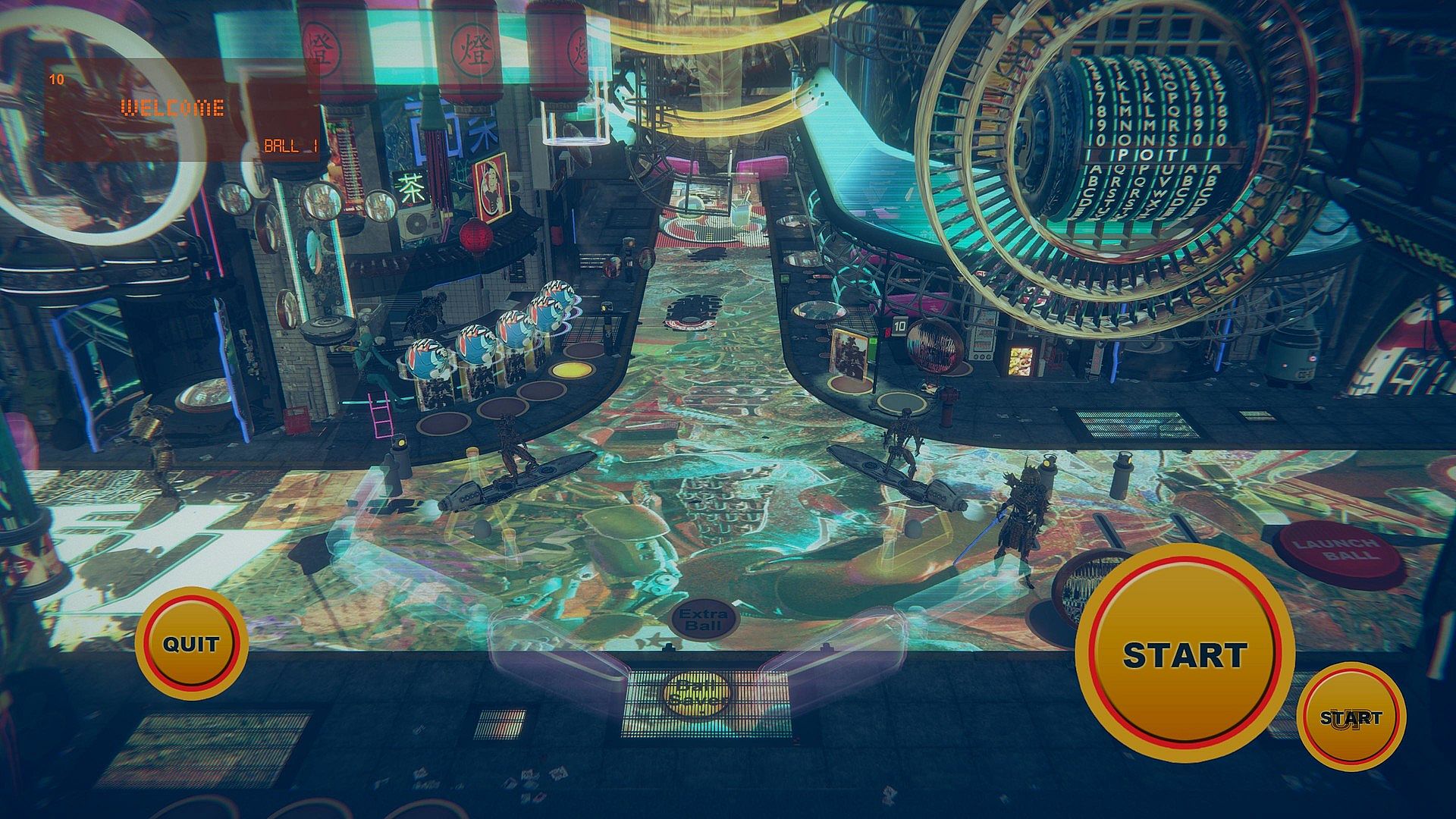 • 2 in 1 Cyberpunk themed pinball tables with unique graphics, missions system, locationsand characters.