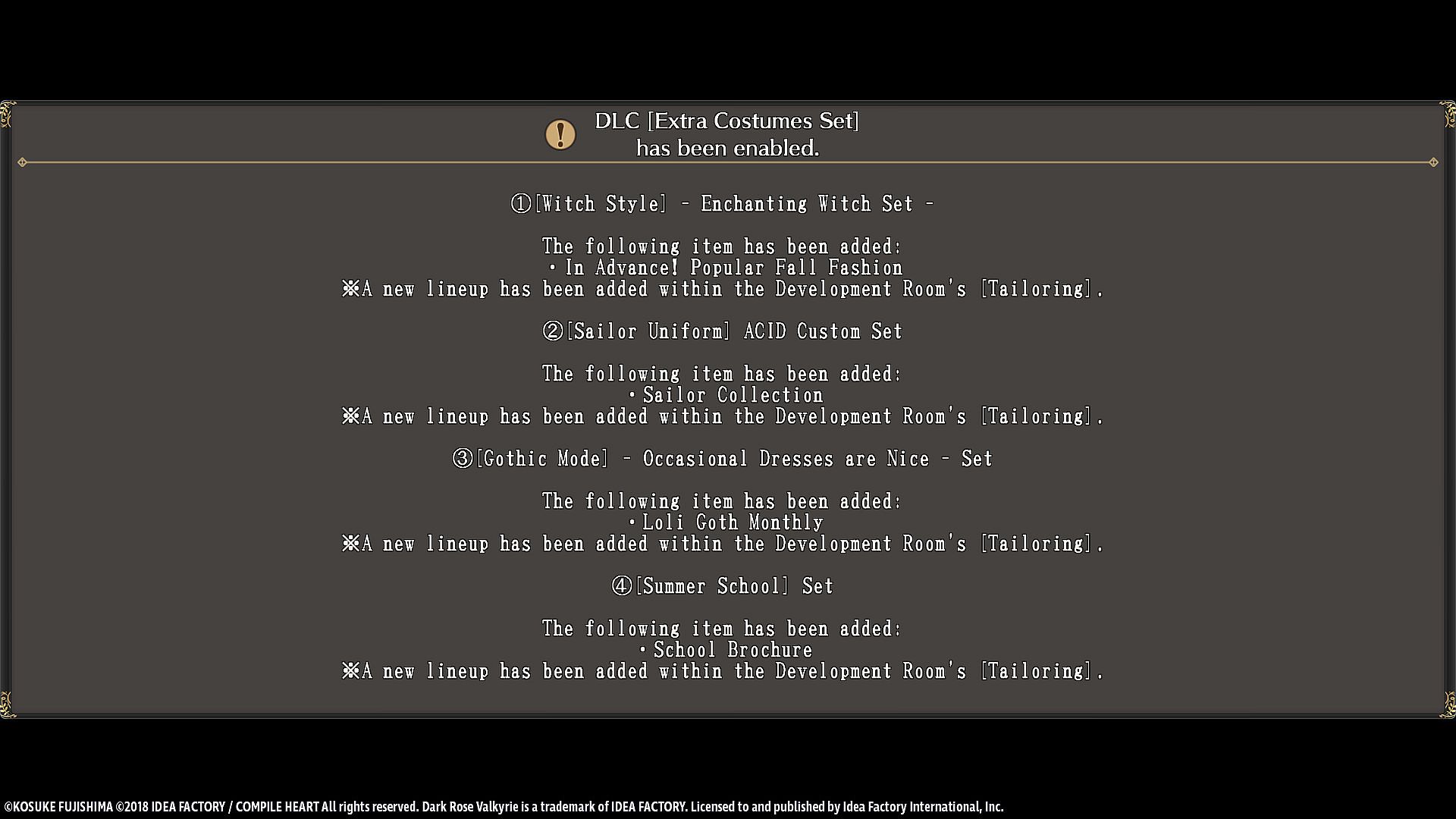 Before you start looking for a cheap Dark Rose Valkyrie: Extra Costumes Set CD Key, take a moment to check the essentials. Developed by Idea Factory. PC released date: 10 Apr 2018. Genres: RPG. Categories: Family Sharing, Single-player, Downloadable Content, Steam Achievements, Full controller support, Steam Cloud.