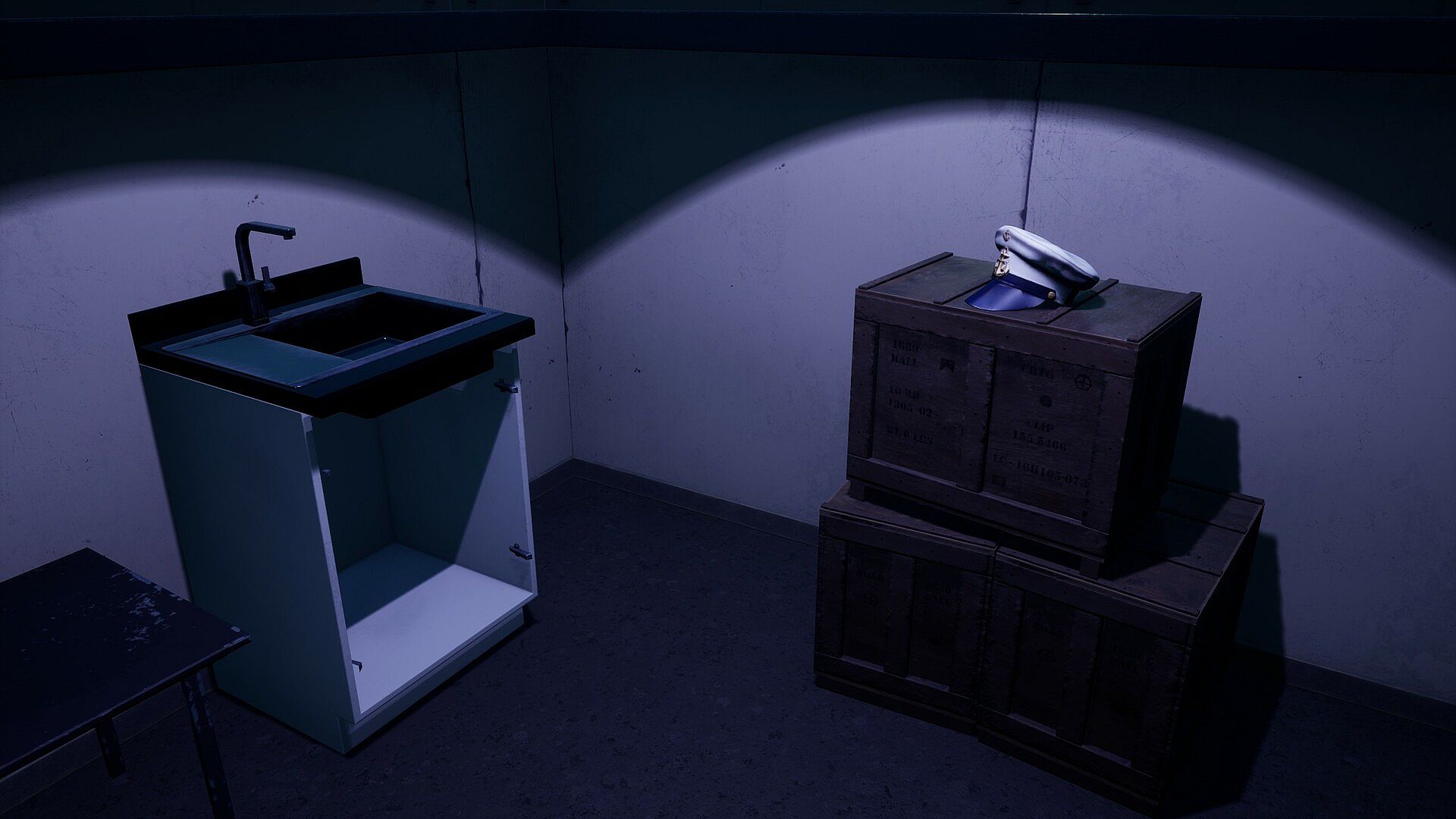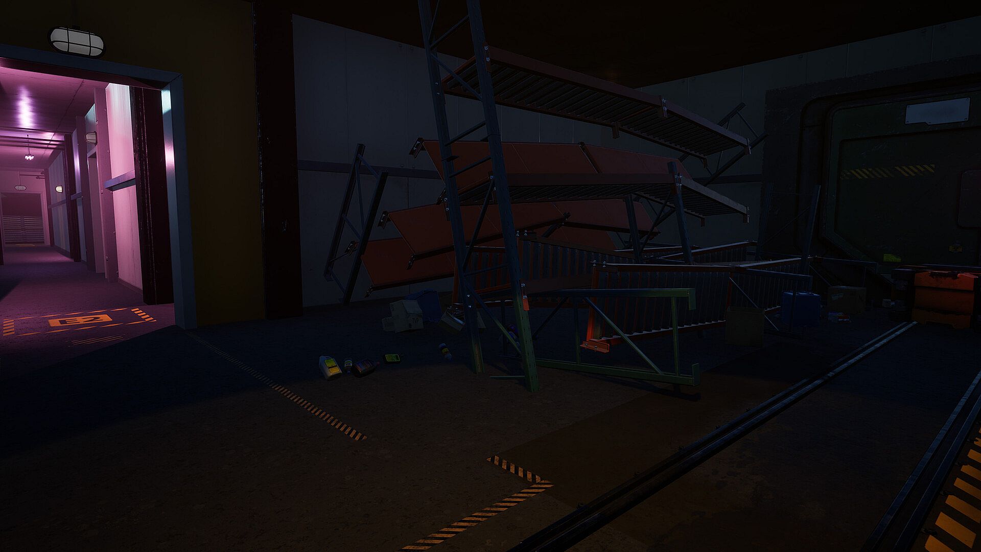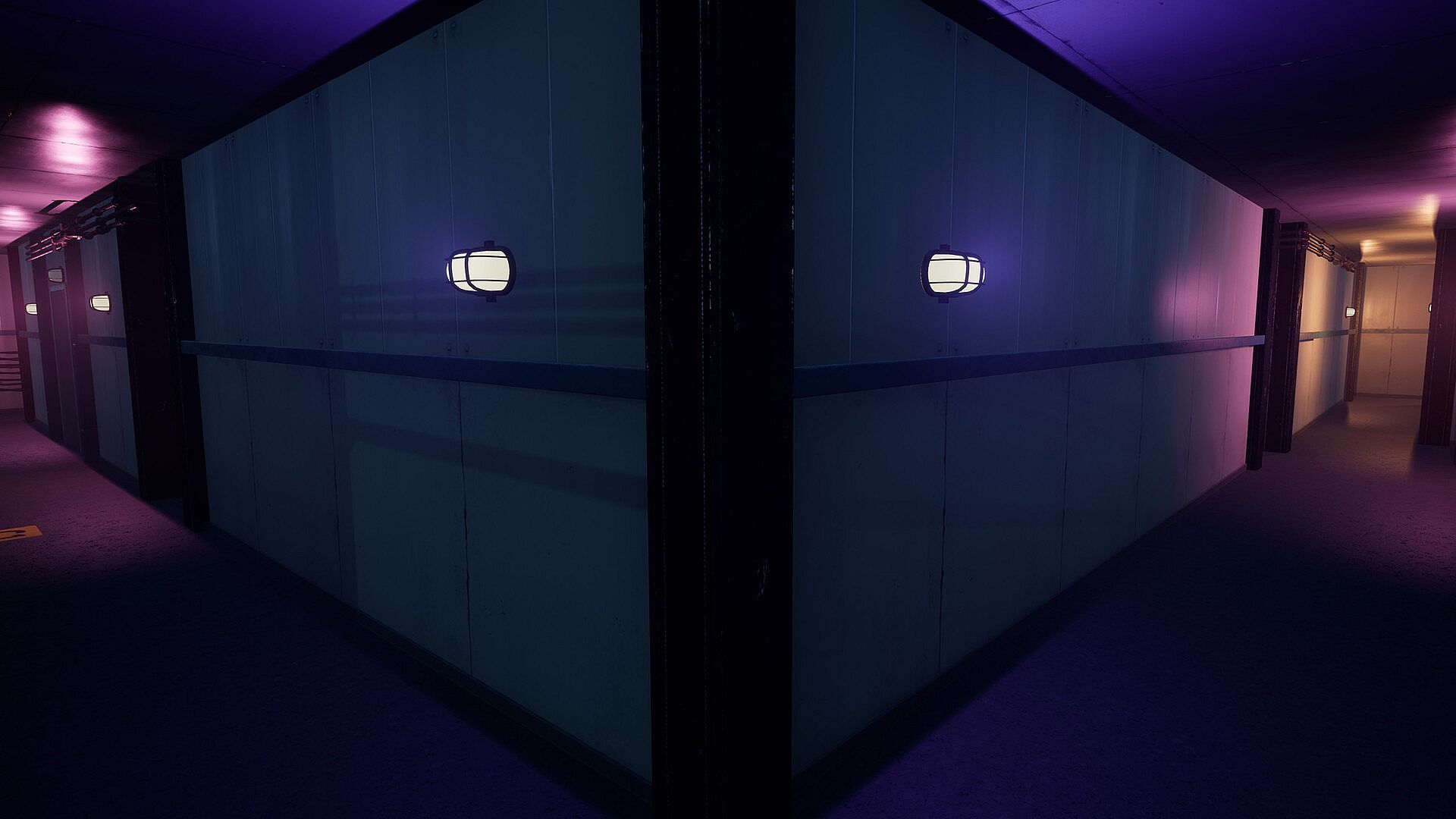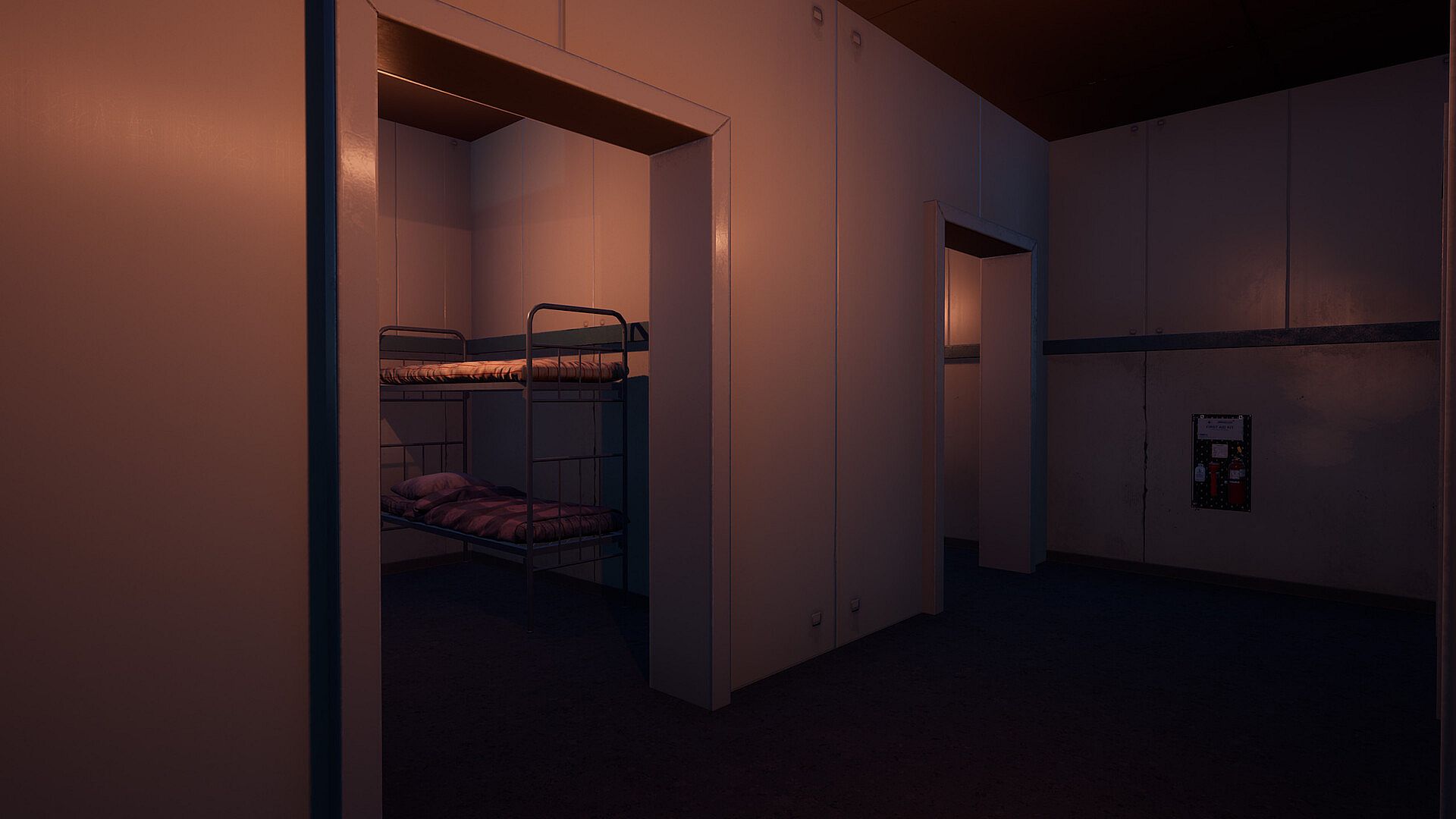 Explore the ship overtaken by sirens from a first-person perspective.