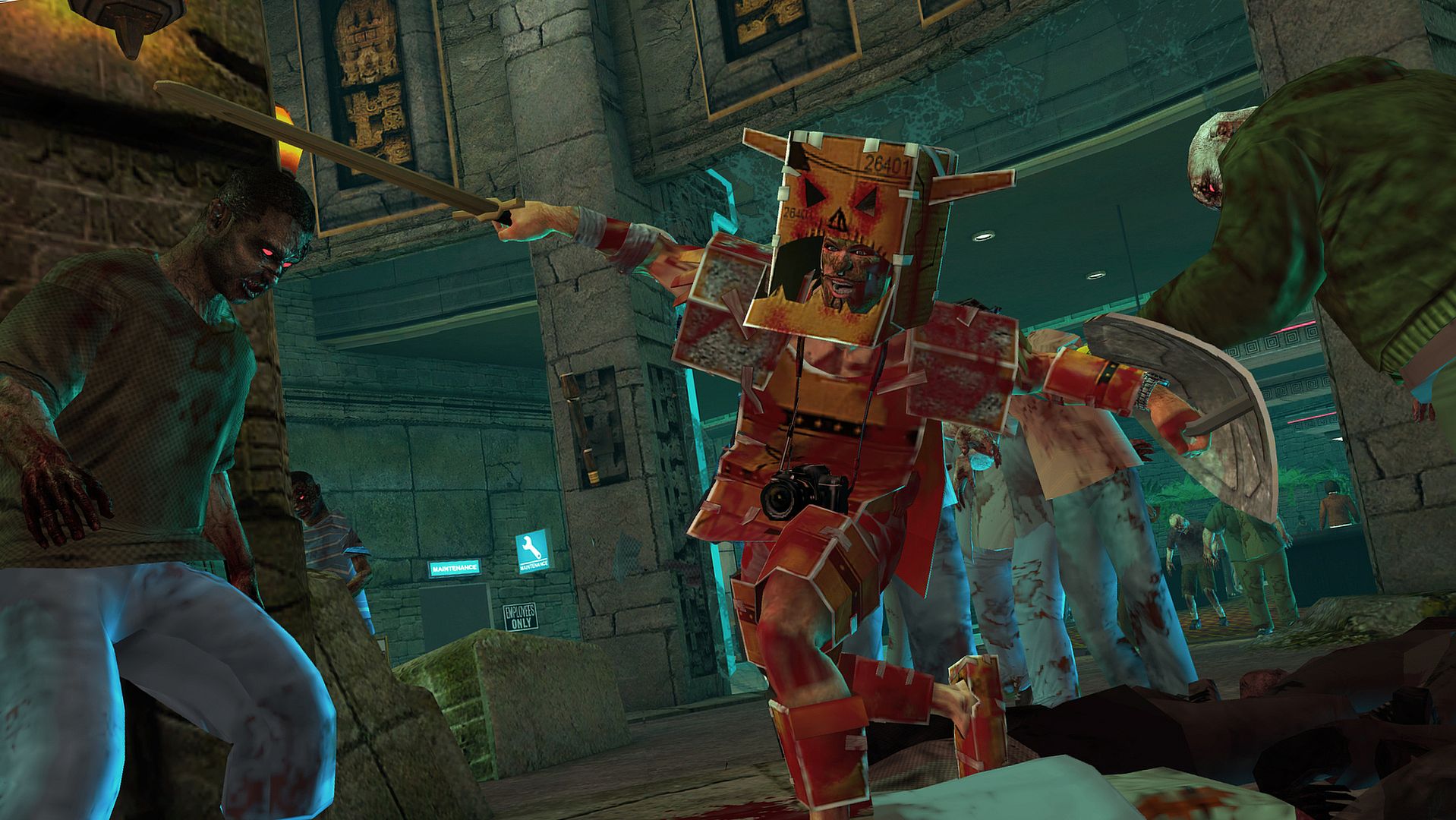 Gear up with makeshift cardboard gear in Dead Rising 2: Off the Record COSPLAY Skills Pack on PC. Players don a helmet, faceplate marked "Monster," armor, and boots crafted from cardboard. This action setup lets you embody a rugged, DIY protector amid chaos. The core loop revolves around suiting up in these durable cardboard pieces for survival action. Each element bolsters your presence in the fray. Fans of hands-on, resource-based action games grab this for authentic cosplay flair.