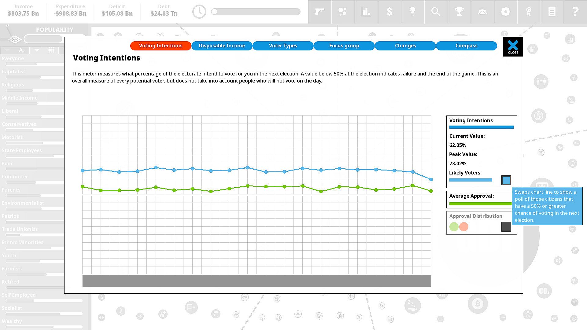 You can also change your country electoral system from 'first-past-the-post' to proportional representation, or maybe do the opposite! plus a new polling option lets you see the difference between the opinions of the electorate as a whole, and those who are considered 'likely voters'.