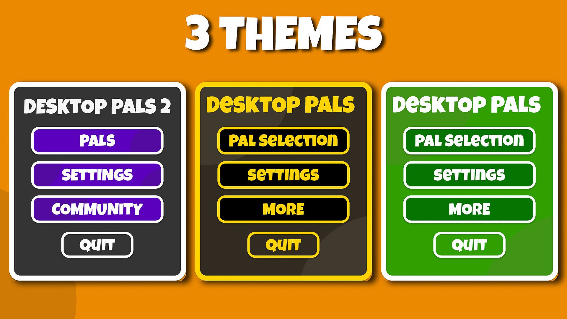 Desktop Pals Gold is the full version of Desktop Pals 2. It gives the player full access to two full pal categories, toony pals and pixelised pals, along with new UI themes.