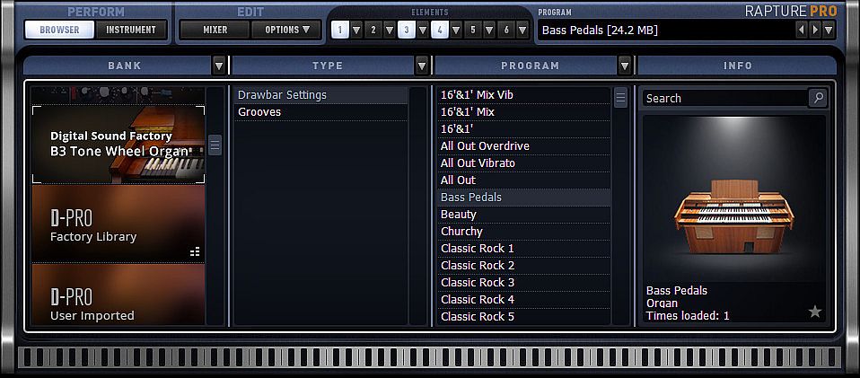 Digital Sound Factory has designed for Cakewalk’s Rapture Pro and Rapture Session virtual instruments this collection of classic B-3 sounds. Each drawbar and combinations of drawbars were recorded and processed for the ultimate sound. Rapture’s powerful user interface allows for quick editing of drawbar settings and timbre.