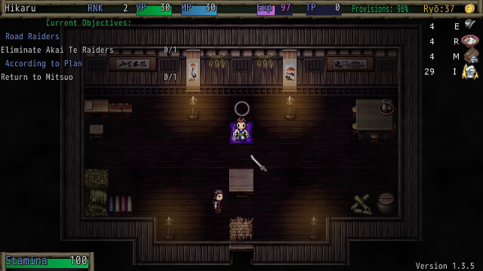 - 15 Ryo added to your supply cache (money)