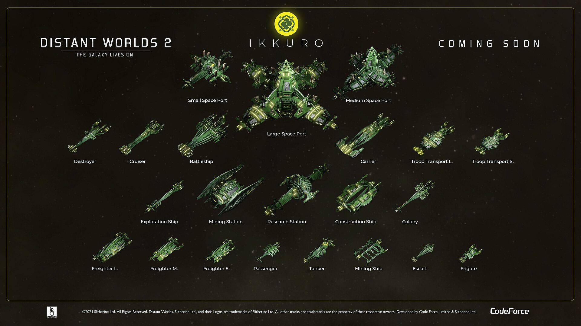 * This Faction DLC also includes a conditional mega-ship or planet destroyer for the Dhayut, in addition to their normal ships and stations.  However, since feature support for mega-ships and planet destroyers is part of the Return of the Shakturi Feature Expansion, that expansion is required to be able to use these special ships.  An Ikkuro mega-ship will be added in the future as a free addition.