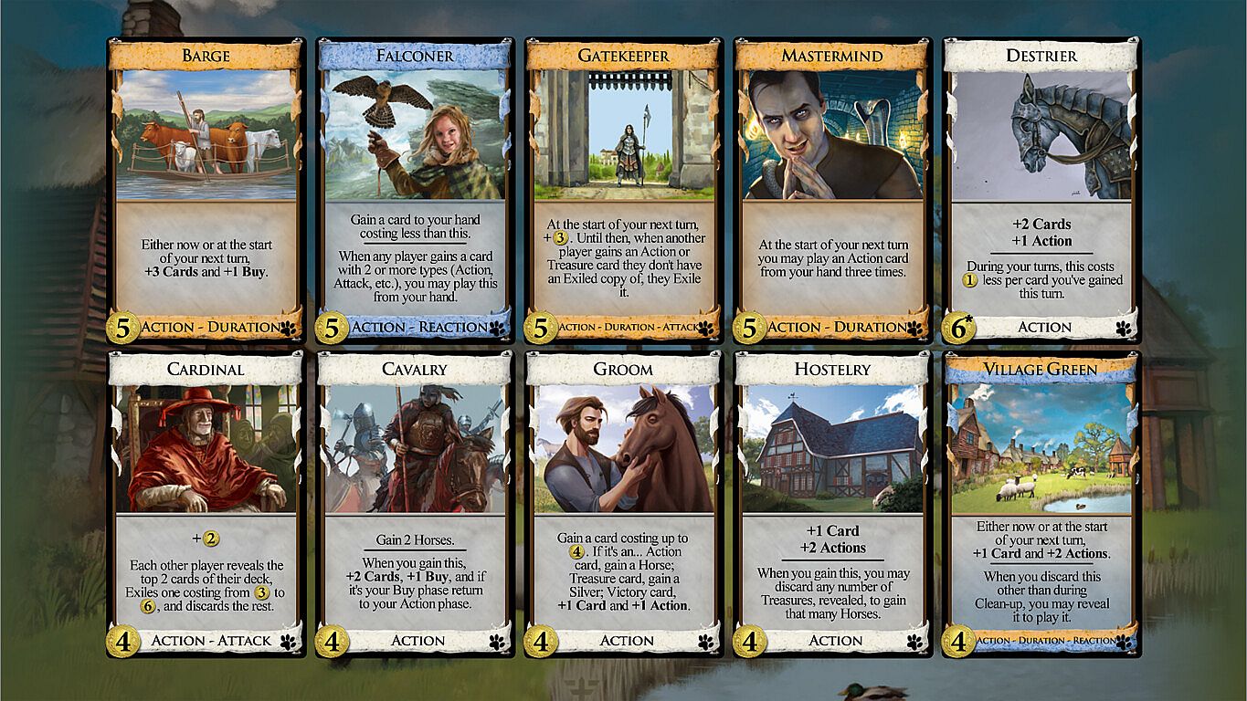 A huge expansion with an animals theme. Players can save cards for later on the Exile mat. Horses help you draw your deck; Ways let you play Action cards to do something other than what they say. Events return, and there's a mini-theme of cards with variable costs.