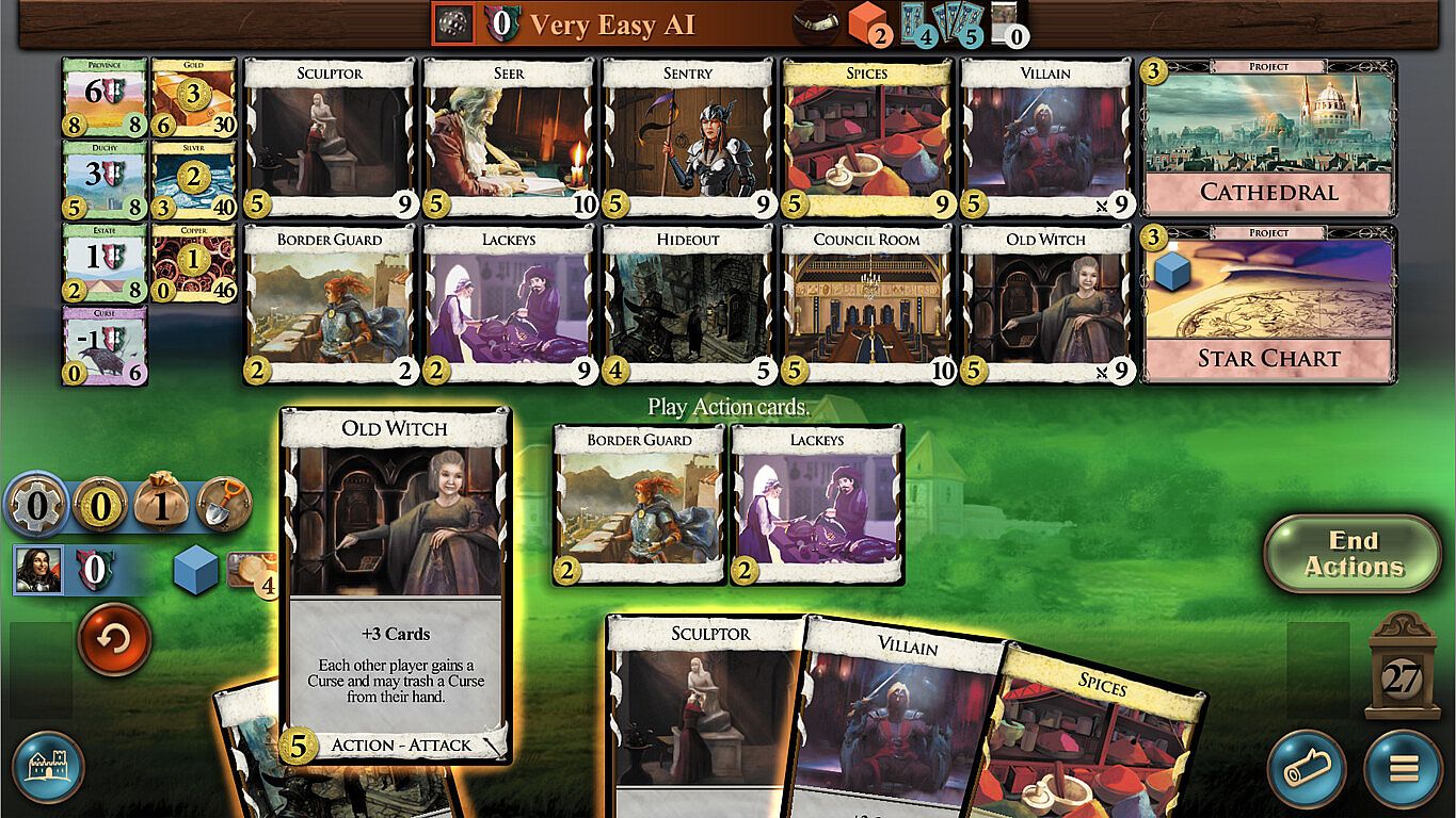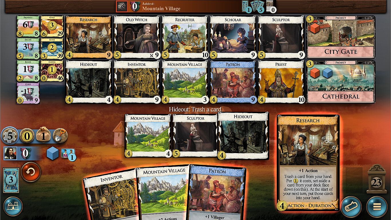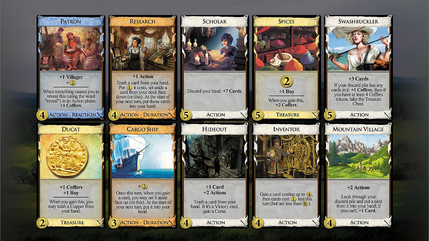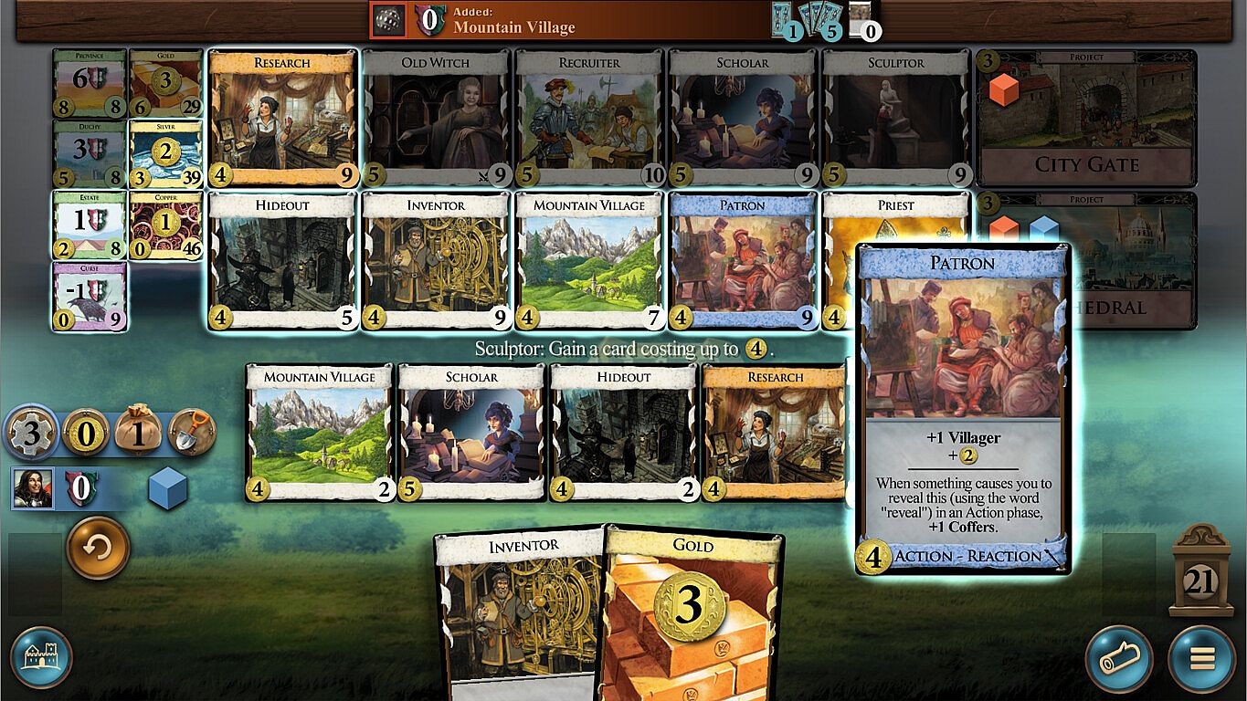 Projects are permanent upgrades that players may buy. You buy a Project in your Buy phase; it costs a Buy and the amount of coin indicated in the corner. When you buy a Project, place one of your cubes on it. Usually, games will contain at most 2 Projects.