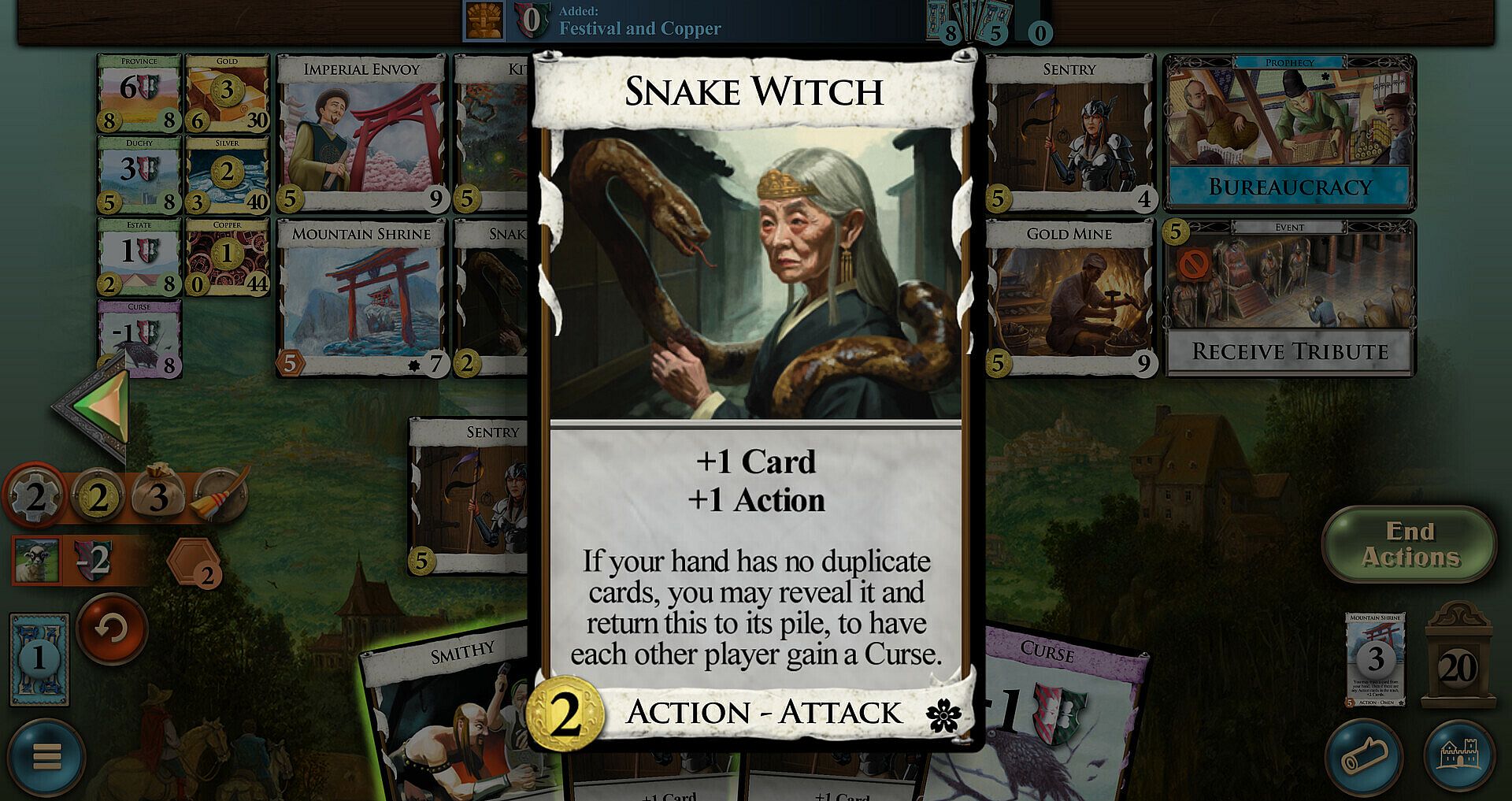 If any Kingdom cards have the Omen type, one Prophecy is included in the game. Prophecies are rules that can eventually apply to the game.