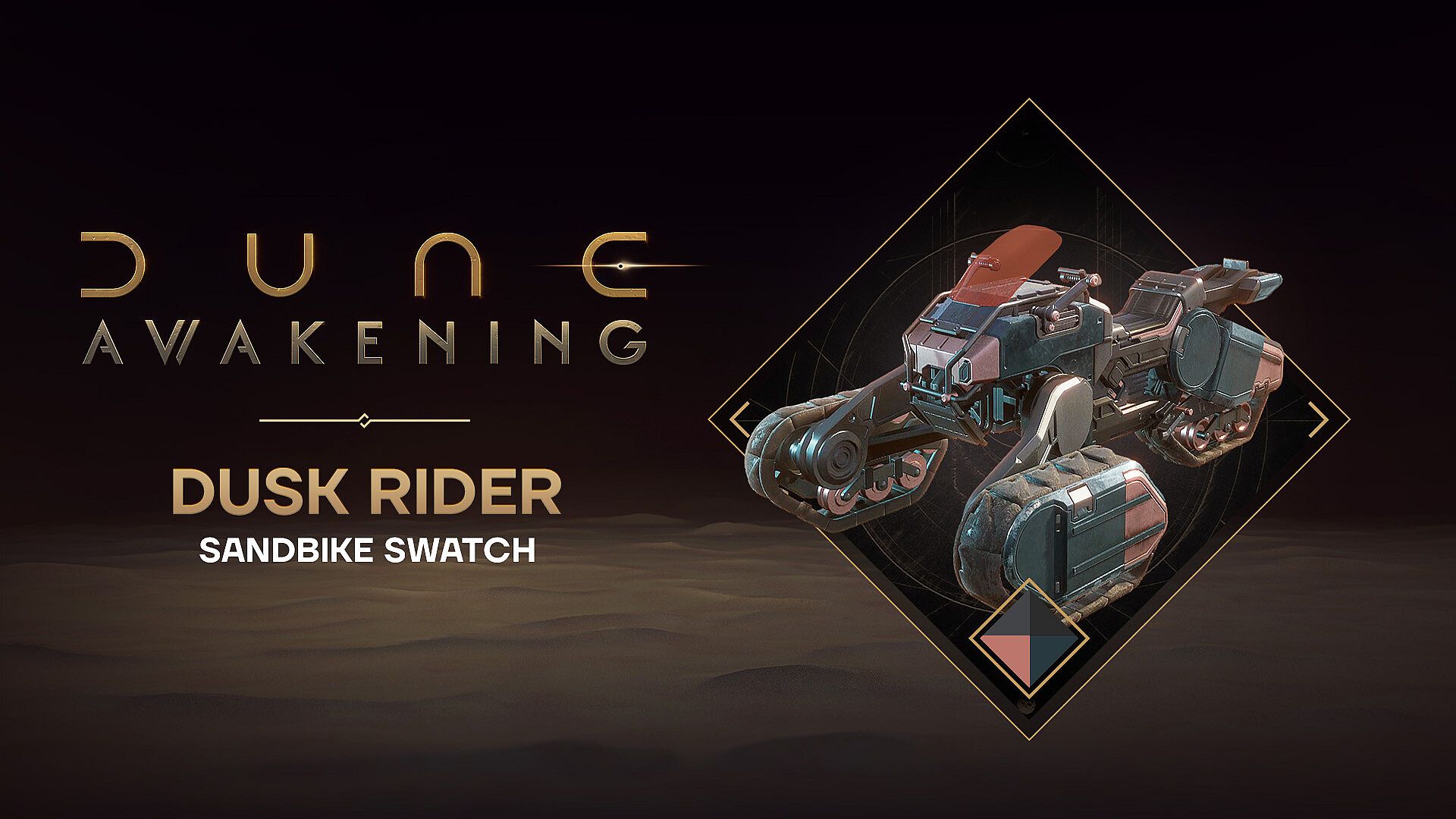 Interested in Dune: Awakening - Dusk Rider Sandbike Swatch? We're tracking prices from trusted stores. Add Dune: Awakening - Dusk Rider Sandbike Swatch to your wishlist and we'll notify you when deals become available.