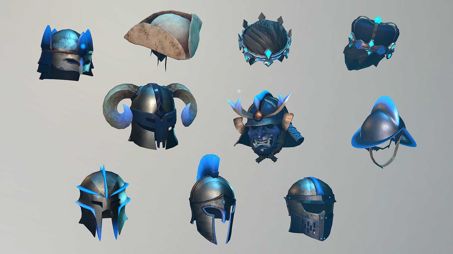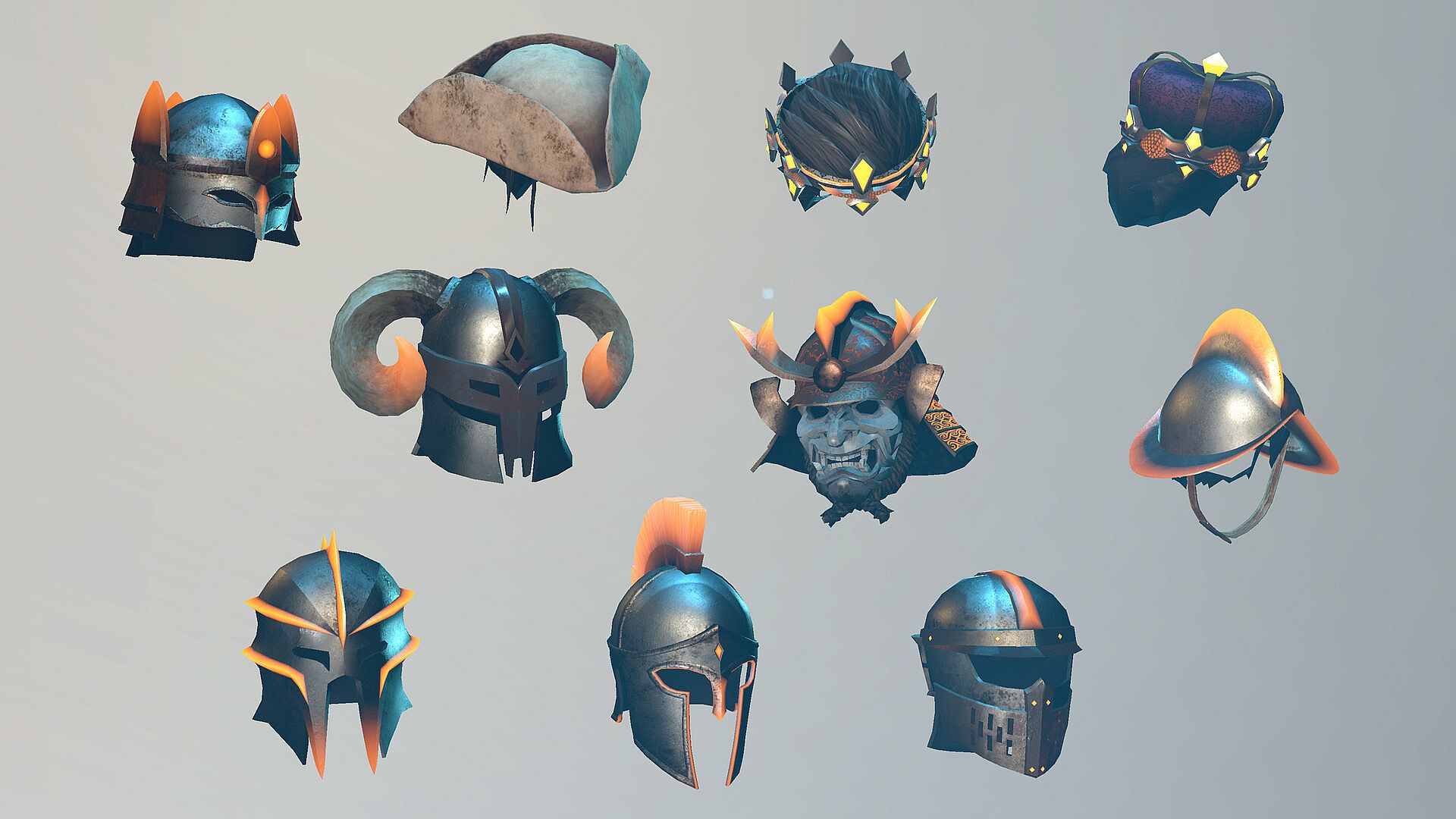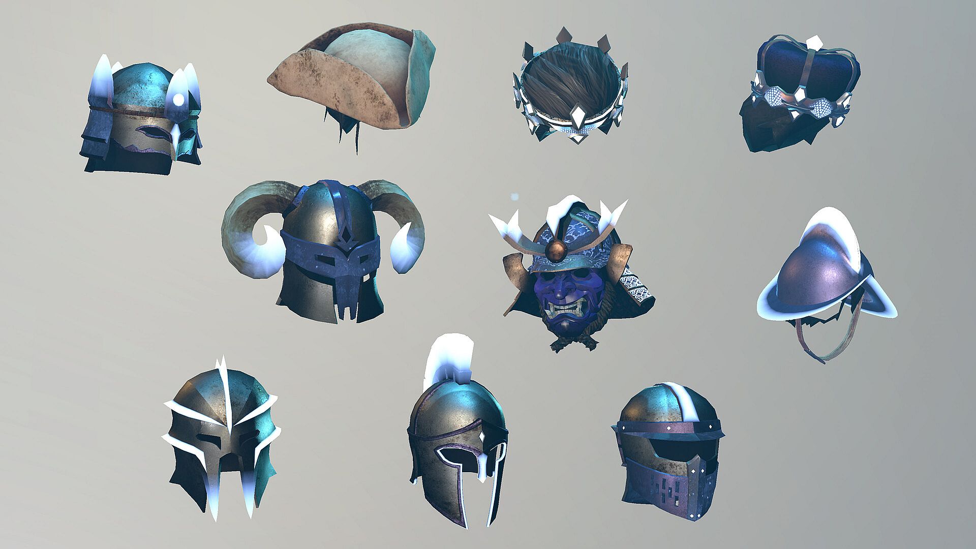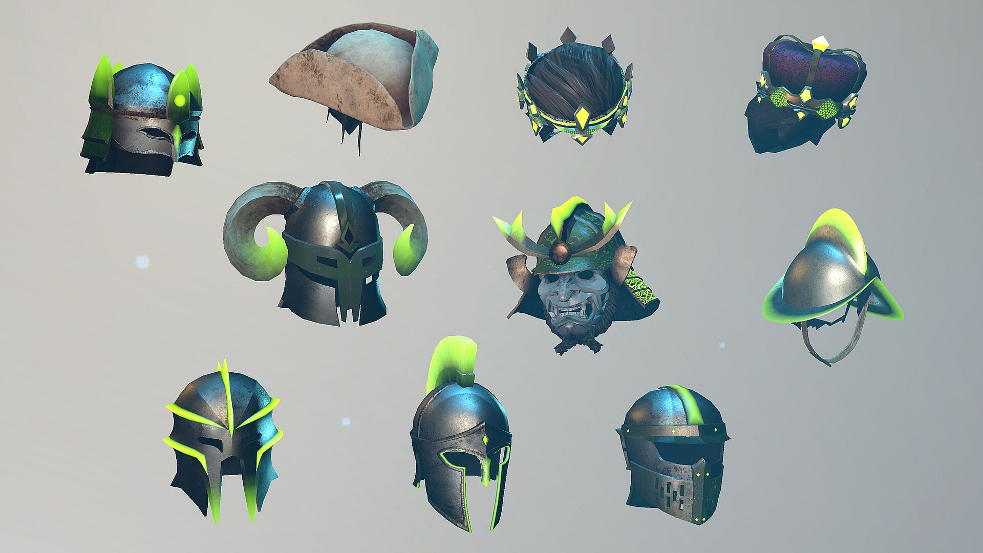 Command respect in the depths with this legendary assortment of helmets and headwear, from ornate crowns to battle-scarred helms. From samurai to sailor to monarch, these headpieces bring gravitas to your dungeon persona. Lead with glory, look the part! The full pack includes: