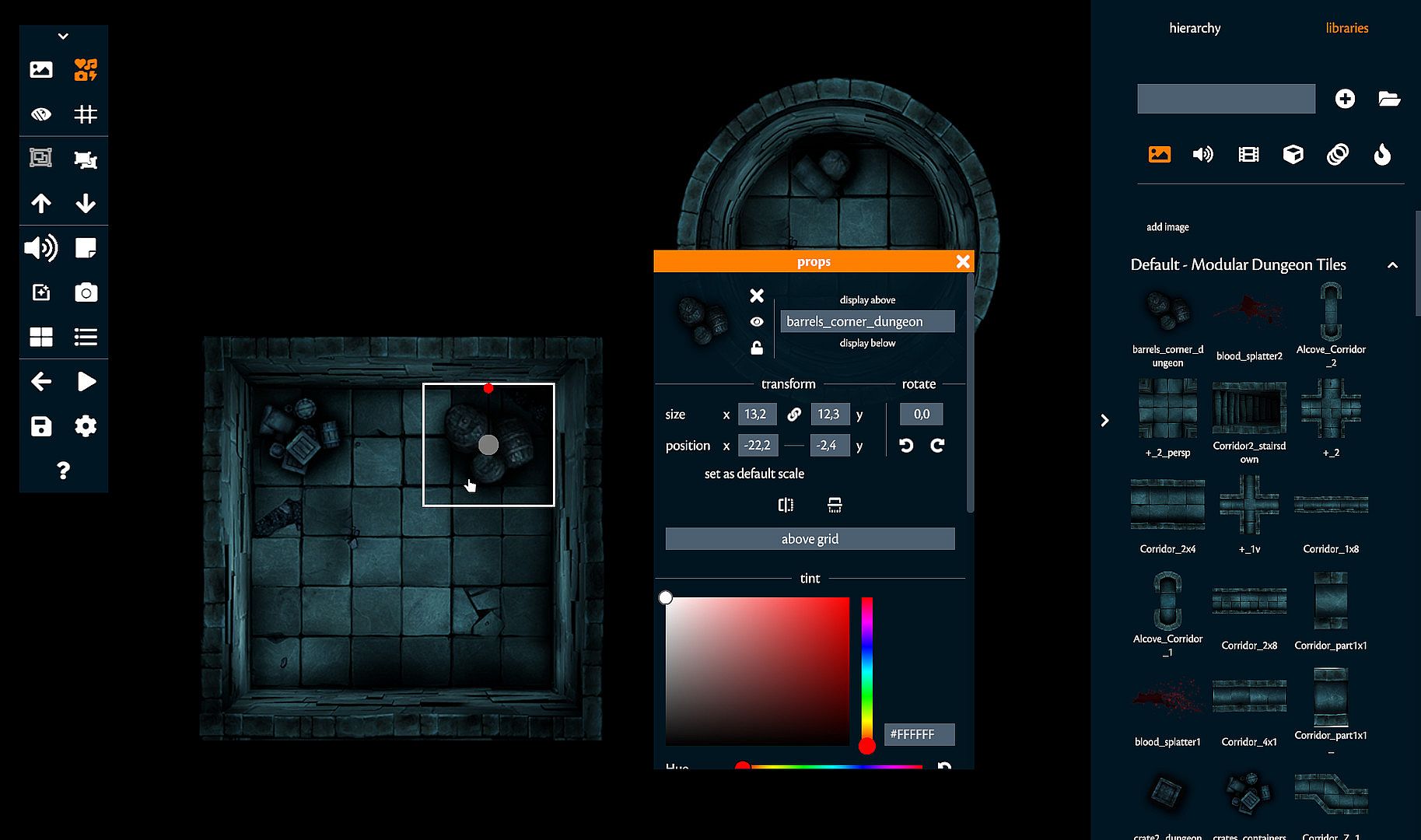 This DLC includes some generic animated video maps, still battle grids, and a modular dungeon tile set of 2D assets and various particle effects and weather effects that you can apply to the built-in or your own or third-party maps.
