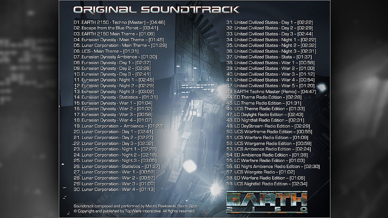 The official game soundtrack to EARTH 2150!