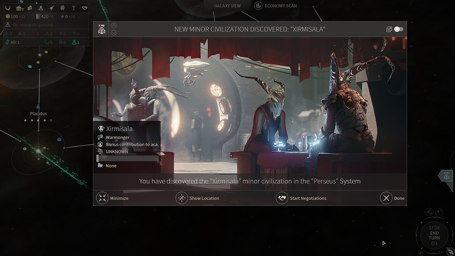 The Xirmisala are Dust-sensitive philosophers, skilled at improving Dust revenues and exploiting exotic and unusual planets. They seek only calm, an outlet for their curiosity, and not to be exploited for their unusual skills.