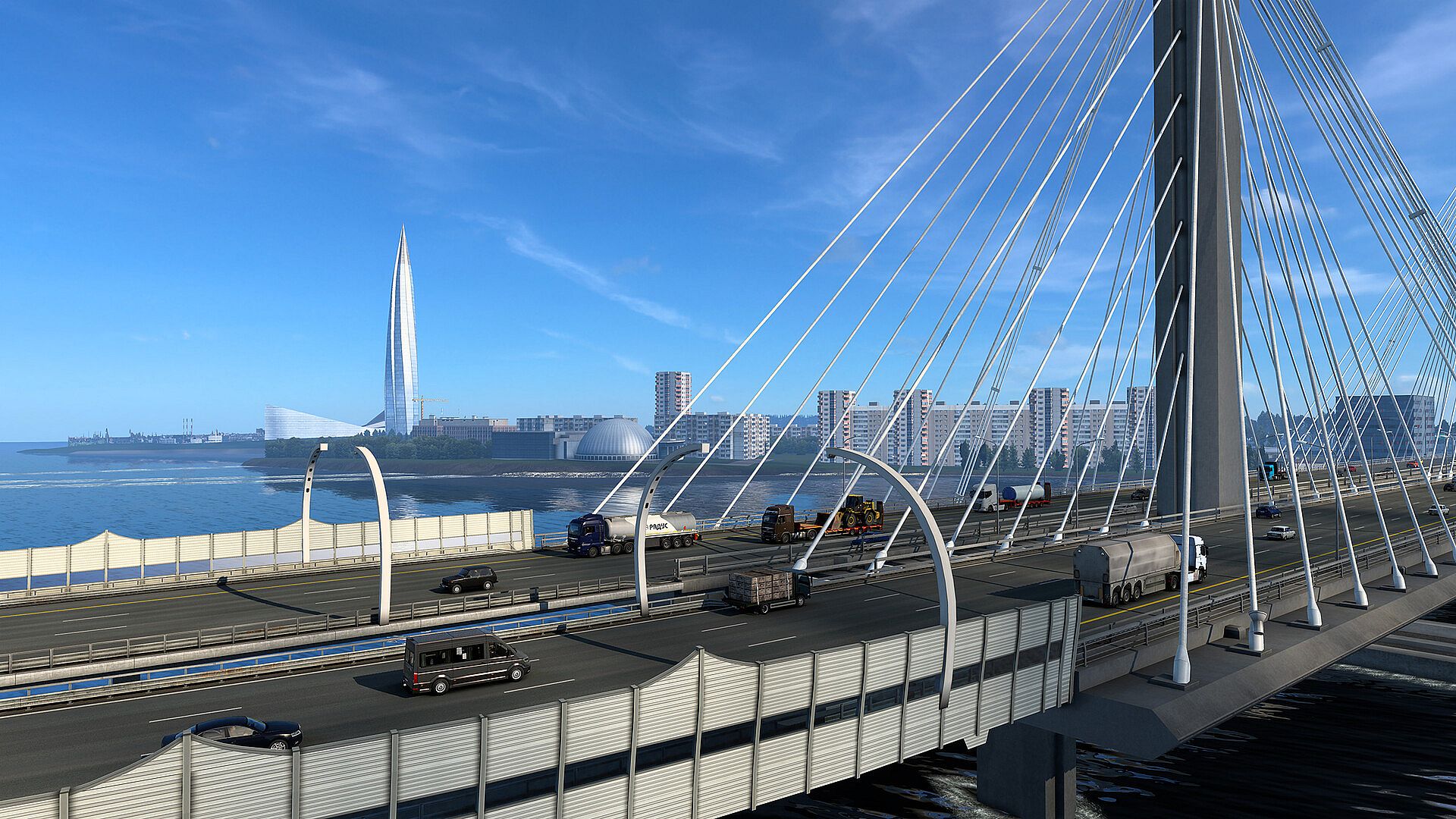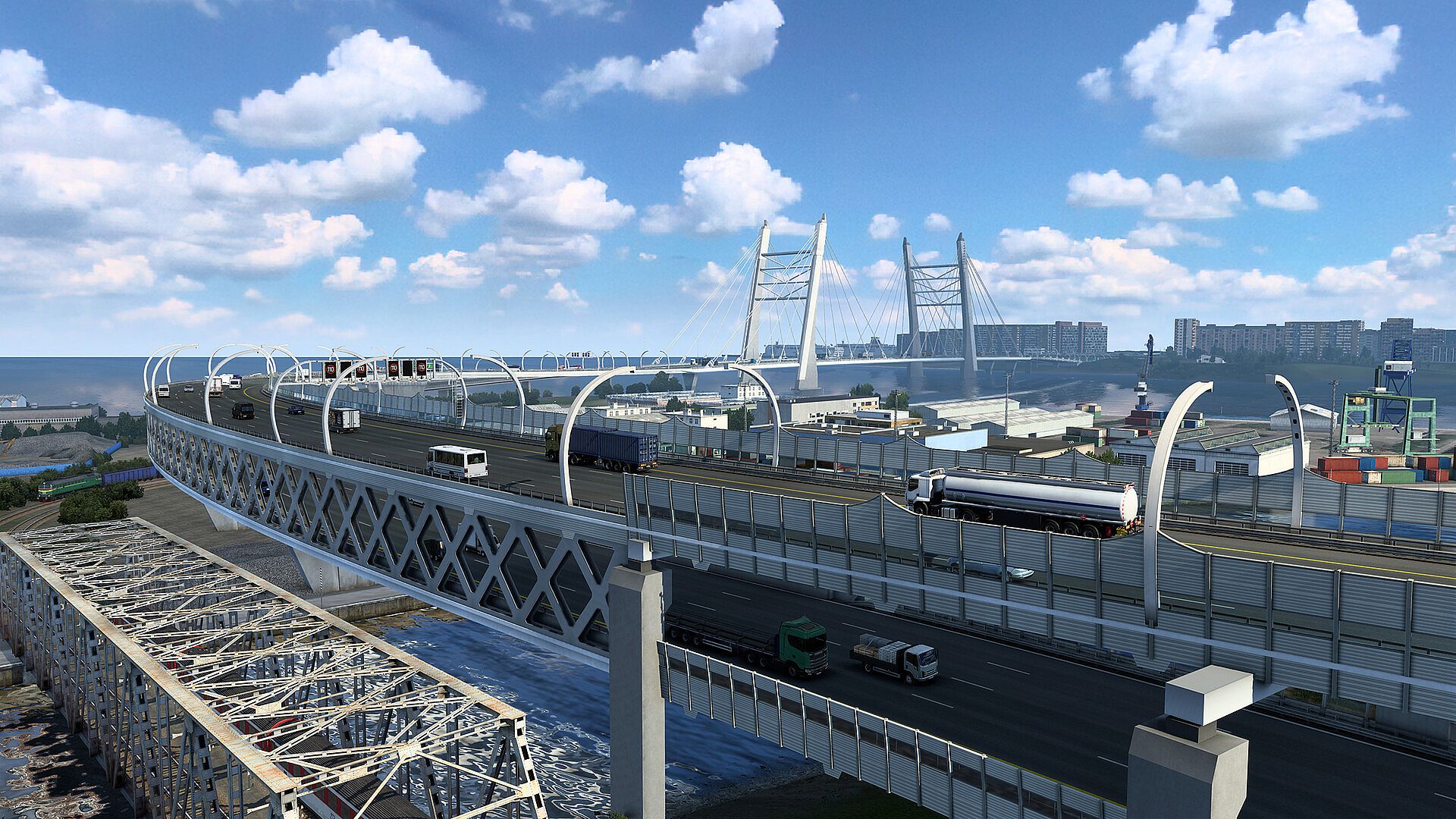 Dozens of new cities, towns, ports and villages, new industries, thousands of kilometers of roads await. You’ll drive through vast swathes of low lying, verdant landscape, dotted with relics of past ages, as well as stark reminders of the great upheaval of the last century. For the first time you will drive into Russia and visit the great northern metropolis of Saint Petersburg. Going further, you will enter populous and industrially rich regions of Finland, where you can enjoy the unique experience of driving efficient High Capacity Transports.