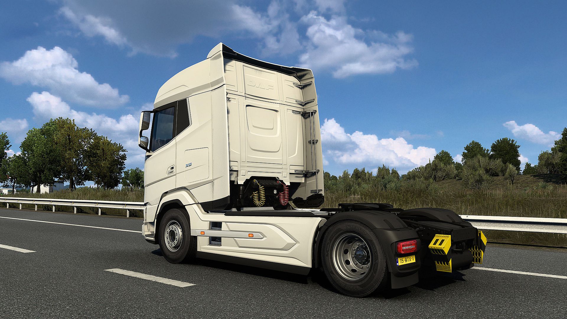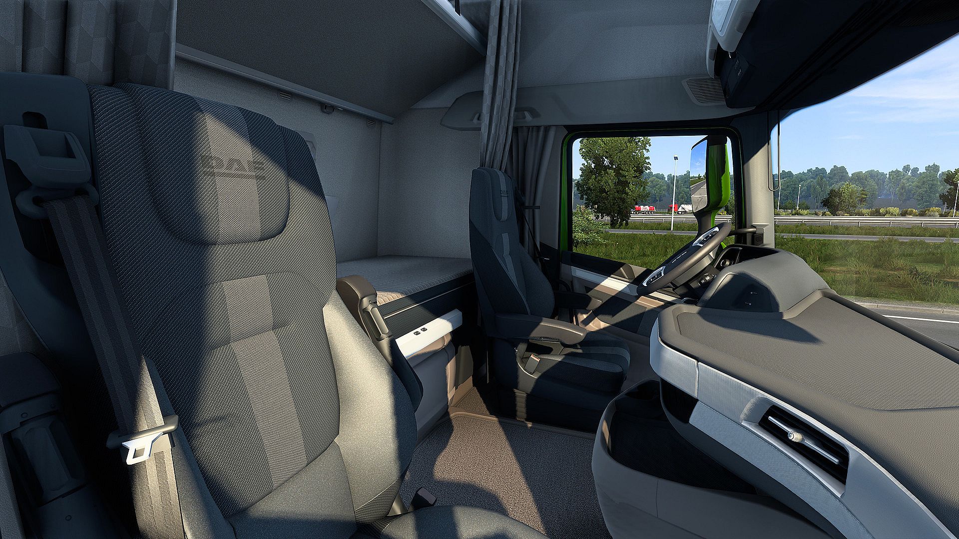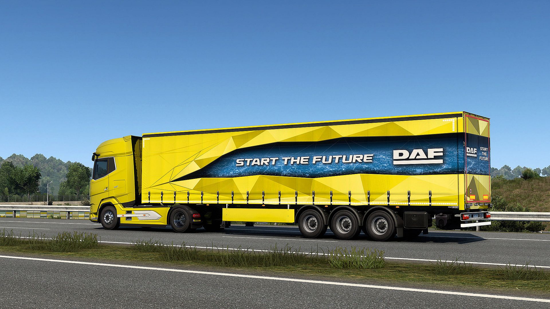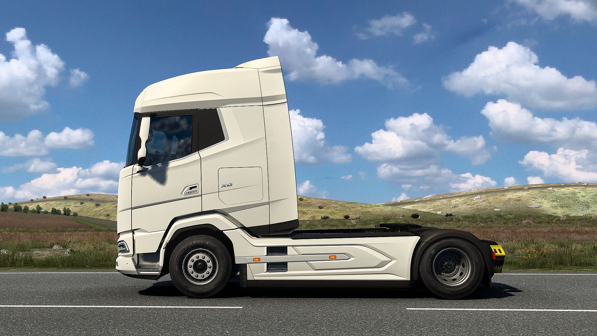 The New-Generation DAF is initially available in Euro Truck Simulator 2 with the XG, XG+, and XF cabin options. With the recent update, we are also proud to bring new parts for the DAF XF, DAF XG, and DAF XG+ trucks with the Model Year 2025 DAF proudly presented at the IAA Transportation expo in Hanover. With that, players can now enjoy new chassis options for all cabins: FTG 6x2, FTT 6x4 and the mighty FTM 8x4 as well as updated interiors with an electronic parking brake lever and new sensors, plus a speed limit and blind spot warning displayed on the Driver Information Panel.