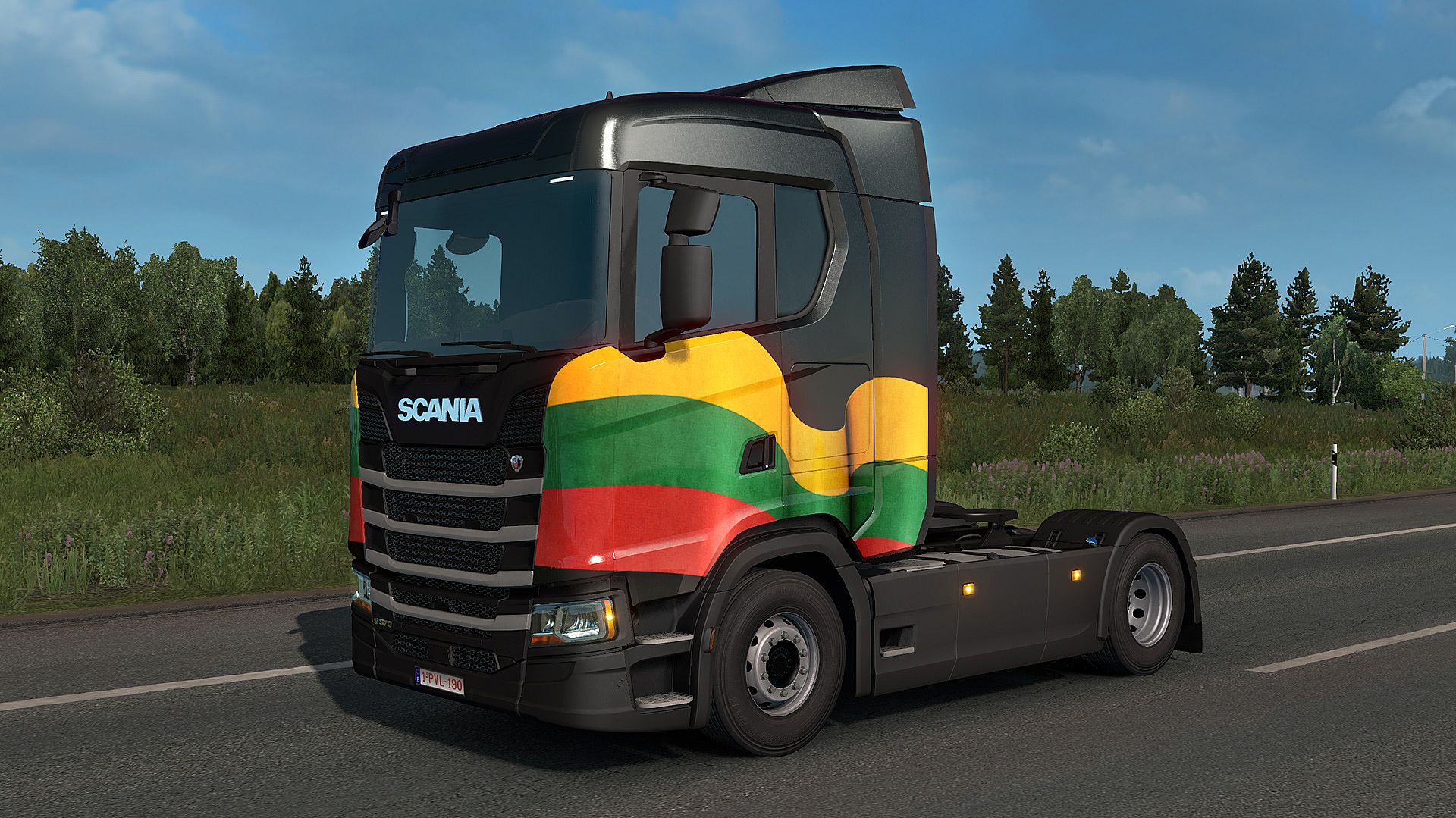 Customize your truck with Lithuanian flag designs in Euro Truck Simulator 2. This indie simulation content offers four distinct paint jobs to display your national pride on the road. Apply them to nearly any in-game truck, skipping only 8x4 chassis setups. Paint options include Chasing Knight, Queen of Serpents, Lithuanian Flag Metallic, and Lithuanian Flag Decal. Truck drivers who enjoy simulation details and personalization find these themes perfect for their fleet. Show affiliation through bold, country-inspired looks that fit the core hauling experience.