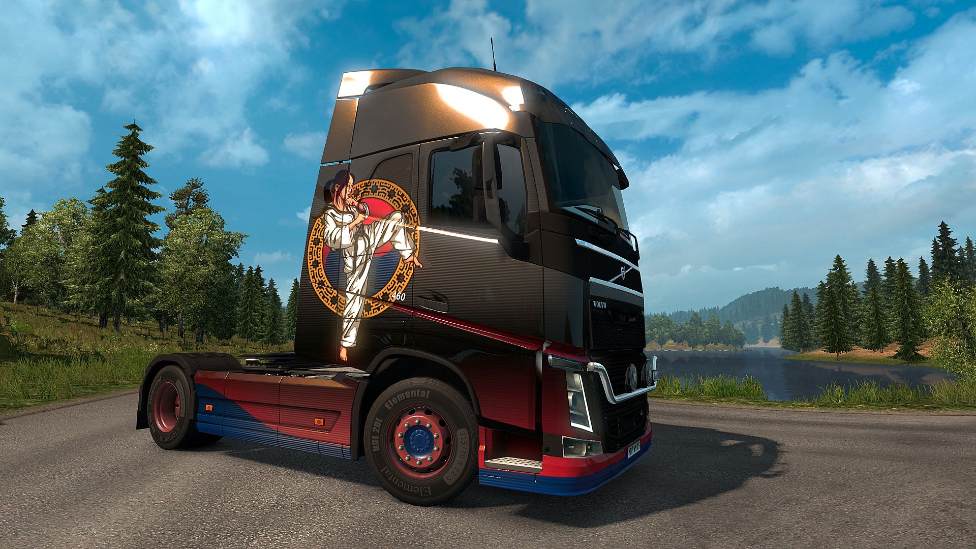Customize your truck with South Korean flag designs in this indie simulation add-on for Euro Truck Simulator 2. Four distinct paint jobs let you display national pride, including Taekwondo Gamer Paradise and South Korean Flag Decal themes. Apply them to most in-game trucks, skipping only 8x4 chassis setups.