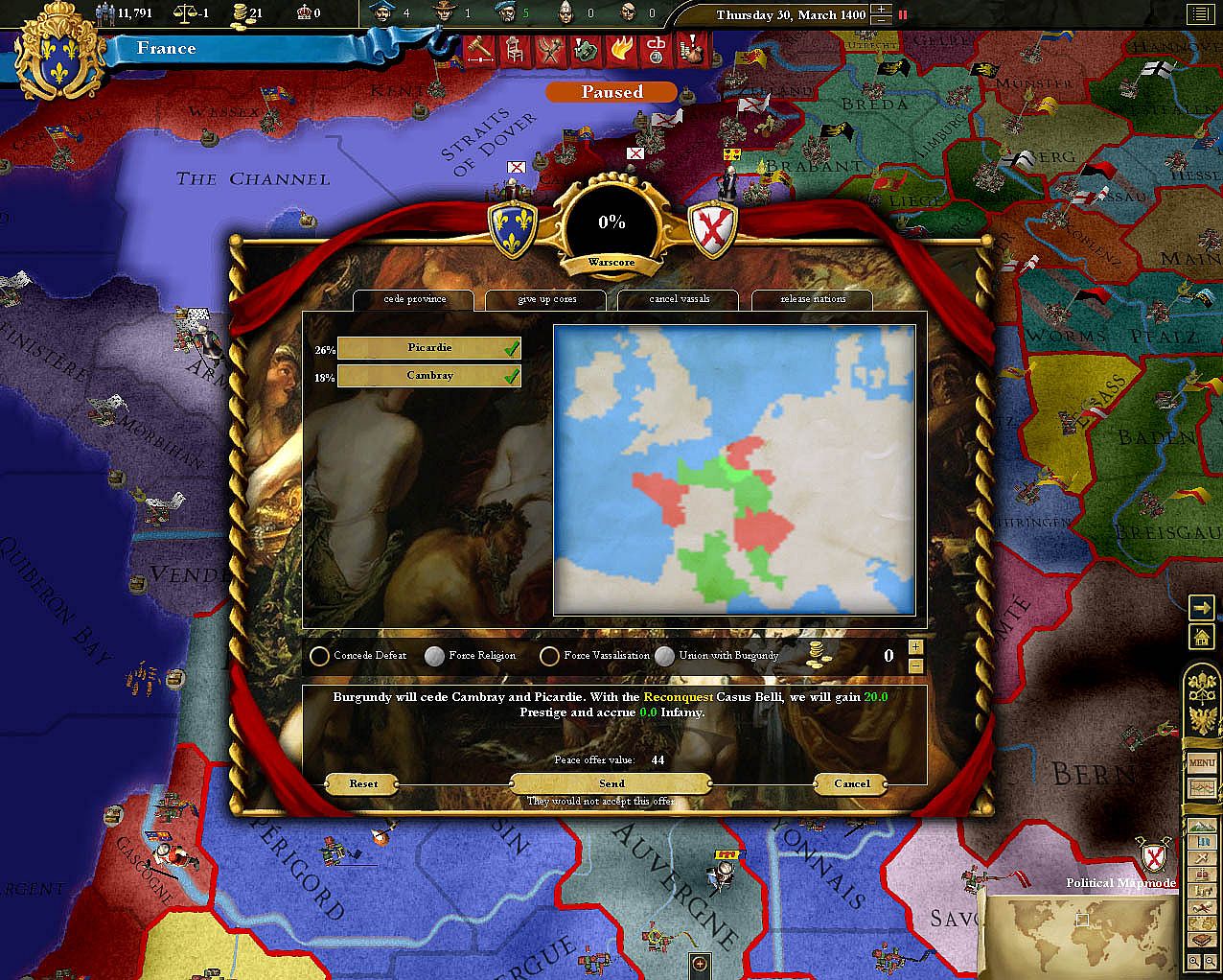 • Intriguing Casus Belli system, where wars have specific goals from start to finish.