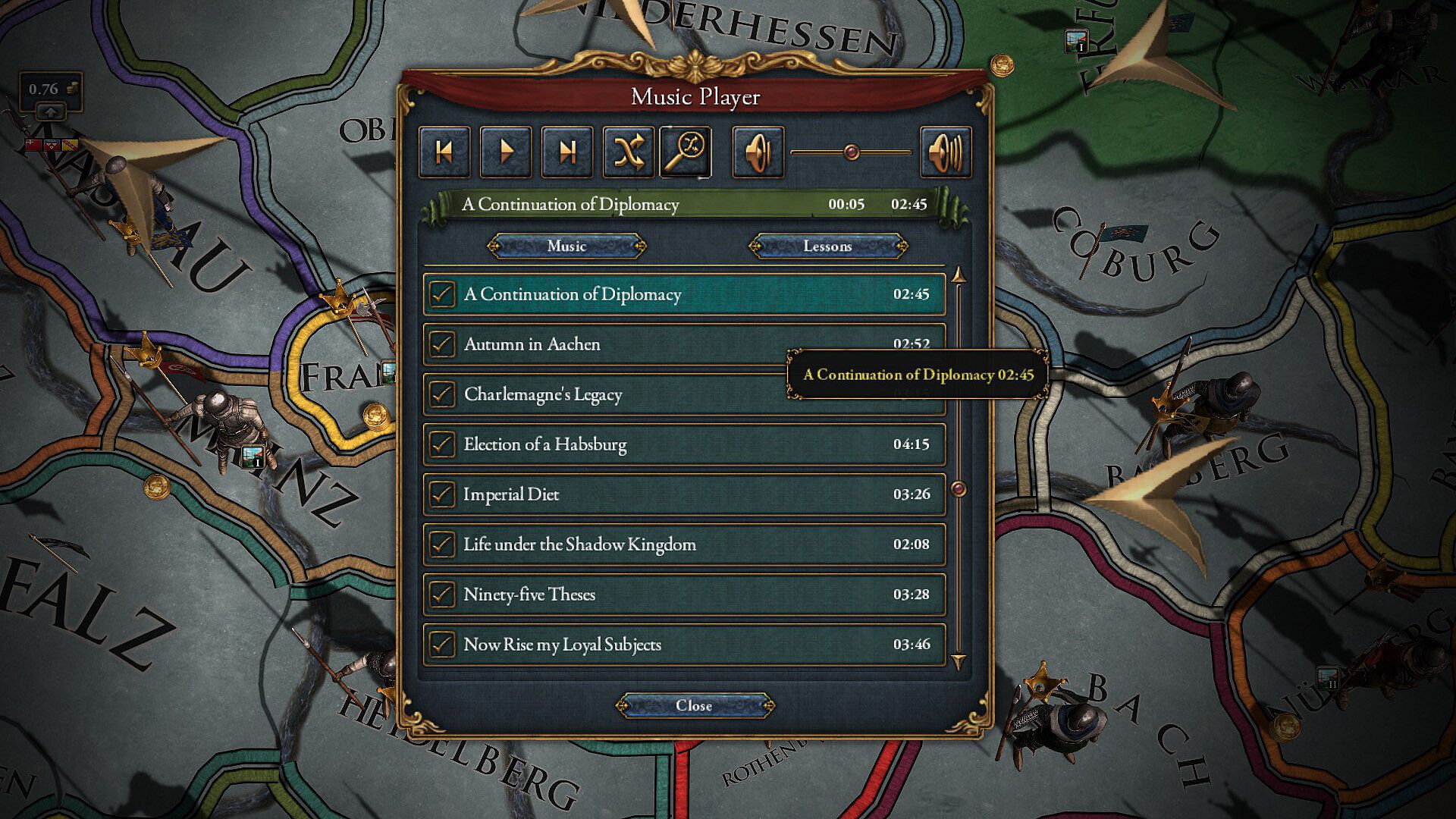 Inspired by the sacred aura and secular might of the Holy Roman Empire, this music collection from composer Utopia adds ten new songs to Europa Universalis IV. Drawing on the motifs of Empire, Order, Diplomacy and Piety, these original compositions highlight the vibrancy and majesty of the Holy Roman Empire at the peak of its power in the early modern era.