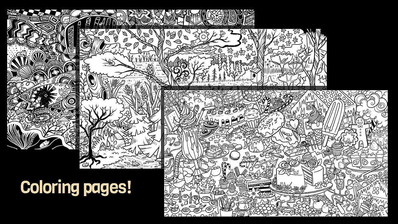 - Separate black and white pages. Coloring these detailed pages will surely be relaxing and fun!