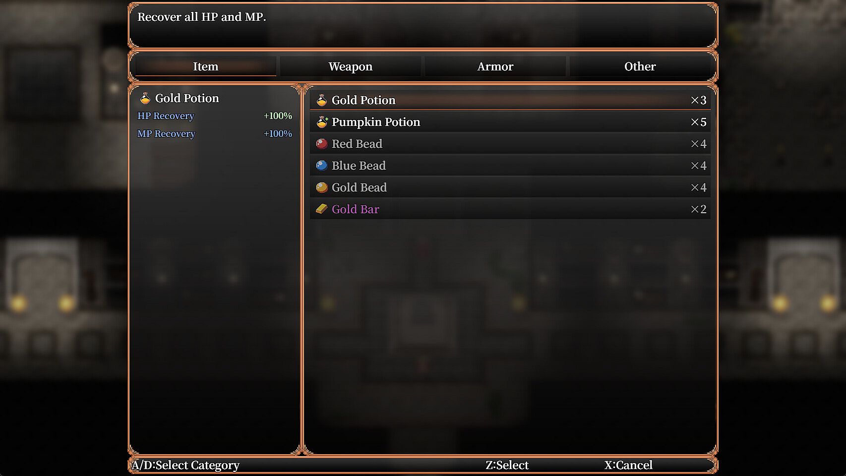 5x Pumpkin PotionĀ (Recovers both HP and MP, buffs all stats by 25% for 5 turns)