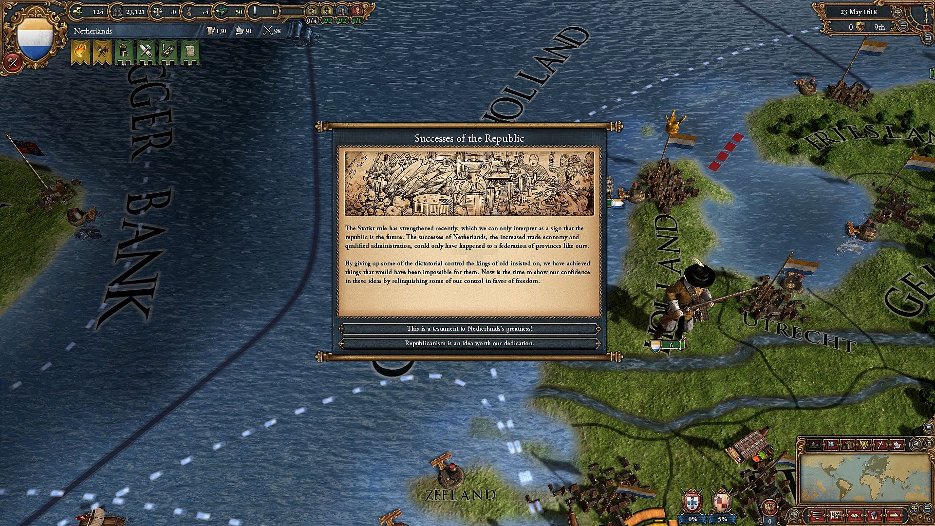 Res Publica expands Europa Universalis IV with fresh approaches to ruling nations and managing republics. Players adopt a Republican Dictatorship government, where Republic Tradition shifts open paths to seize or cede power. Faction influence from Aristocrats, Traders, or Guilds delivers targeted bonuses when players invest power wisely. Dutch Republics gain specialized election events pitting Statists against Orangists, triggering votes every four years or upon a ruler's death. New Idea Groups unlock broader exploration options alongside trade and diplomacy tools. Strategy and simulation fans who master governance, warfare, and faction play thrive in this depth-driven expansion.