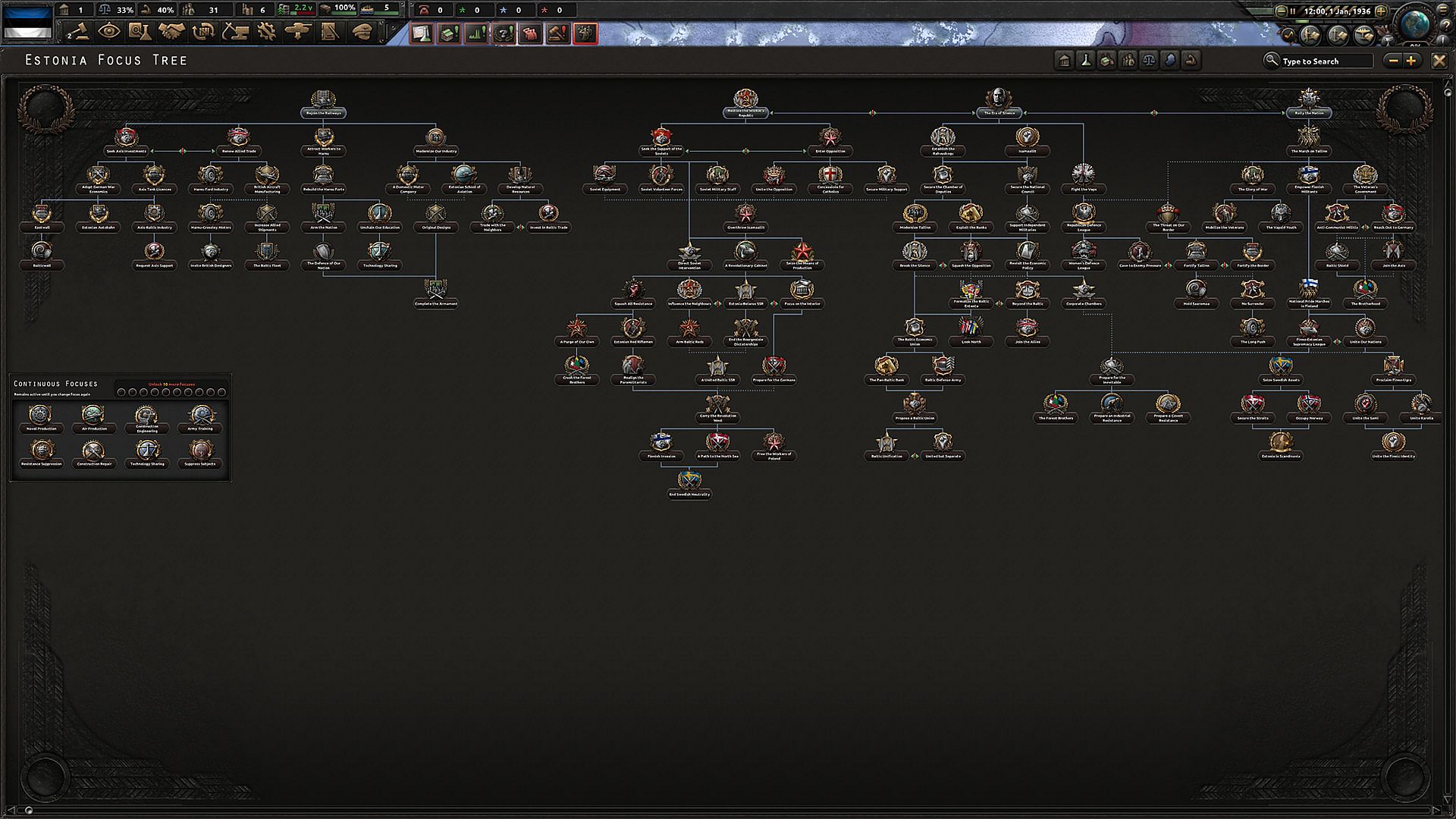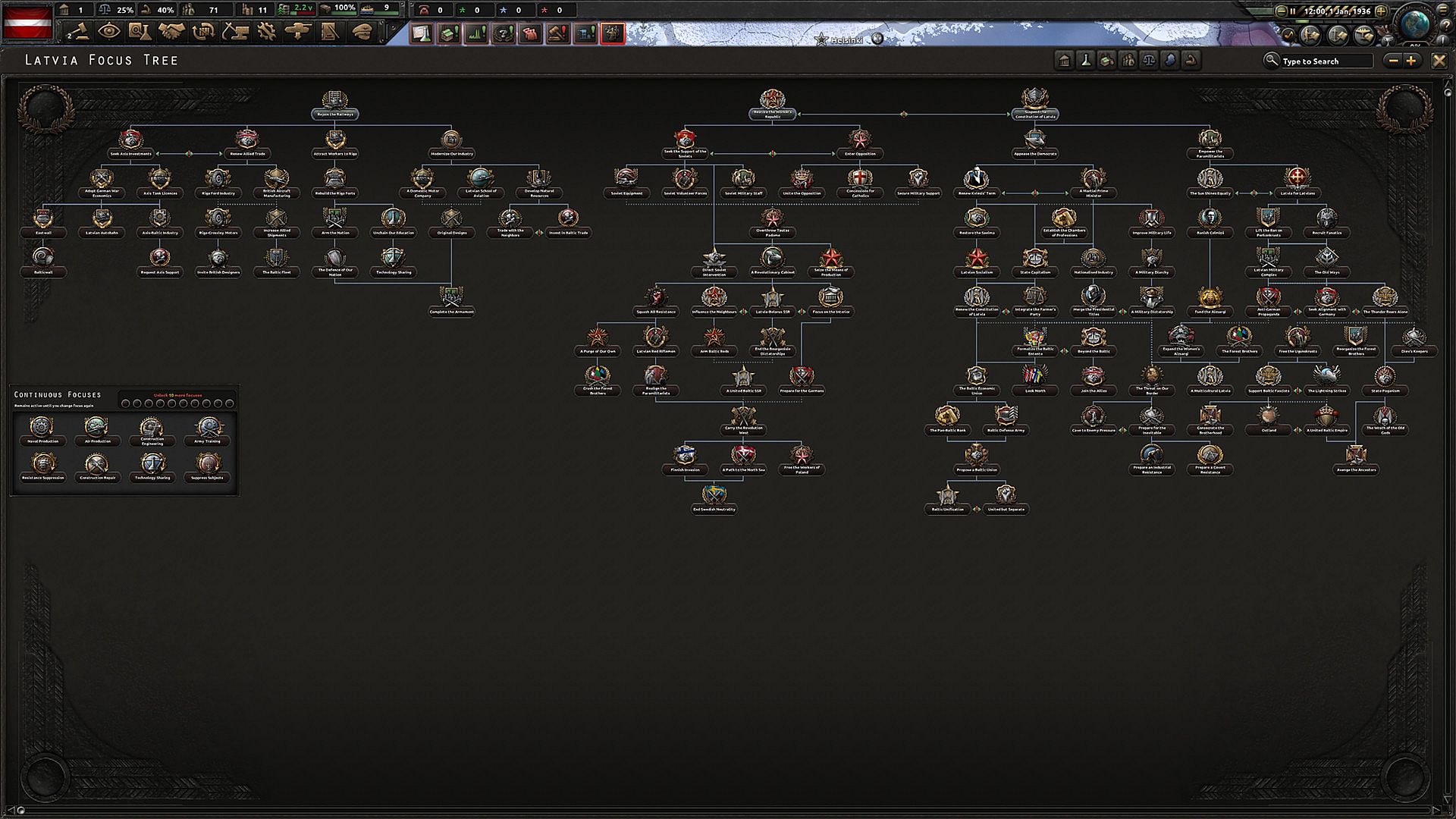 • New Baltic National Focuses: Shared alternate history paths for Estonia, Latvia and Lithuania, as well as unique paths for each.