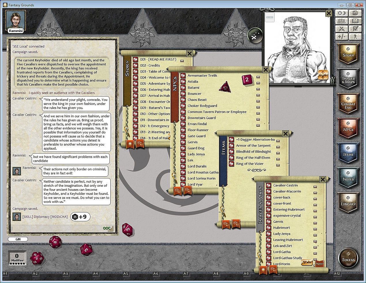 Requirements: An active subscription or a one time purchase of a Full or Ultimate license of Fantasy Grounds and the included 3.5E (or compatible) ruleset.
