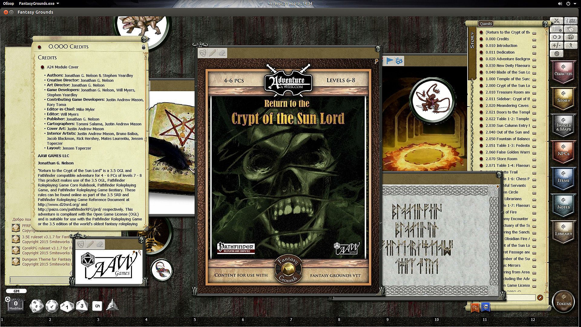 Requires: A Fantasy Grounds full or ultimate license or an active subscription and the included 3.5E/Pathfinder ruleset.