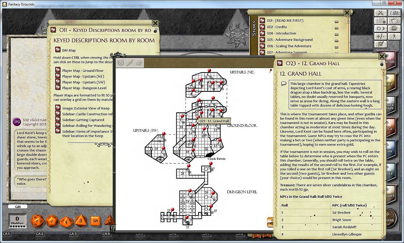 Requirements: A Full or Ultimate license of Fantasy Grounds and the 3.5E (or compatible) ruleset. *D20_JPG is another popular, compatible ruleset