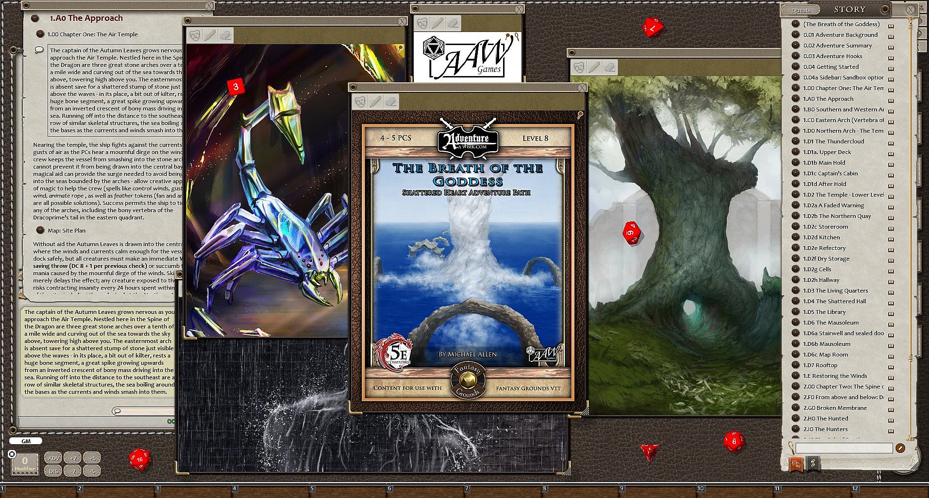 The lost archipelago of Picollo now lies under the waves deep in the southern seas, buried under the body of the Dracoprime. In the area known as The Spine of the Dragon, the ancient temple to the air aspect of the Great Mother still stands, shrouded in mystery and superstition. A mission to reclaim the site shortly after the end of the Hoyrall Wars was aborted prematurely without discovering the fate of the priests once serving the goddess at this mystical site. The madness of the past seeks to trap the heroes as they venture forth to uncover the mysteries therein, and the madness of the present seeks to hide the truths lurking under the breath of the goddess.