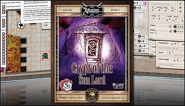 Before you start looking for a cheap Fantasy Grounds - 5E: The Crypt of the Sun Lord CD Key, take a moment to check the essentials. Developed by SmiteWorks USA, LLC. PC released date: 05 May 2016. Genres: Strategy, Indie, RPG. Categories: Multi-player, Family Sharing, Co-op, Downloadable Content, Cross-Platform Multiplayer.