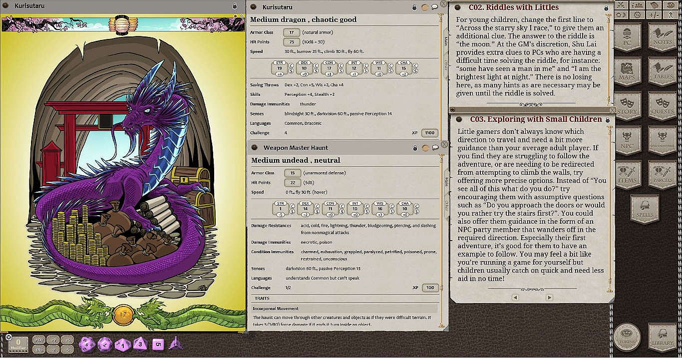 Kurisutaru is an orphaned crystal dragon! When his mother disappears, he finds himself all alone in an abandoned monastery. After years spent with only constructs for company, he leaves to find a true forever friend and playmate. When he stumbles upon Azumi, he naively kidnaps the young magical prodigy with a gift for origami. The dragon scares her but she does her best to reach out to would-be rescuers! Can the PCs follow a trail of clues to save both Azumi and Kurisutaru from the dragon’s loneliness?