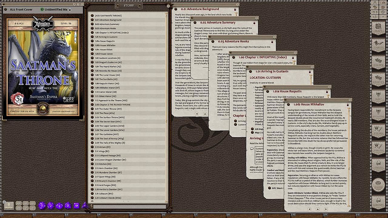 Requires: An active subscription or a one time purchase of a Fantasy Grounds Full or Ultimate license and the included 5E Compatible ruleset.